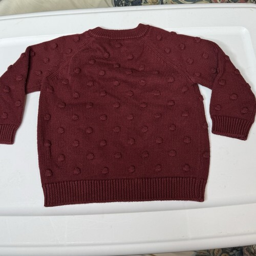 - Cat & Jack Baby Girls 6-9 M Pullover Sweater Maroon Popcorn Swiss Dot Cotton