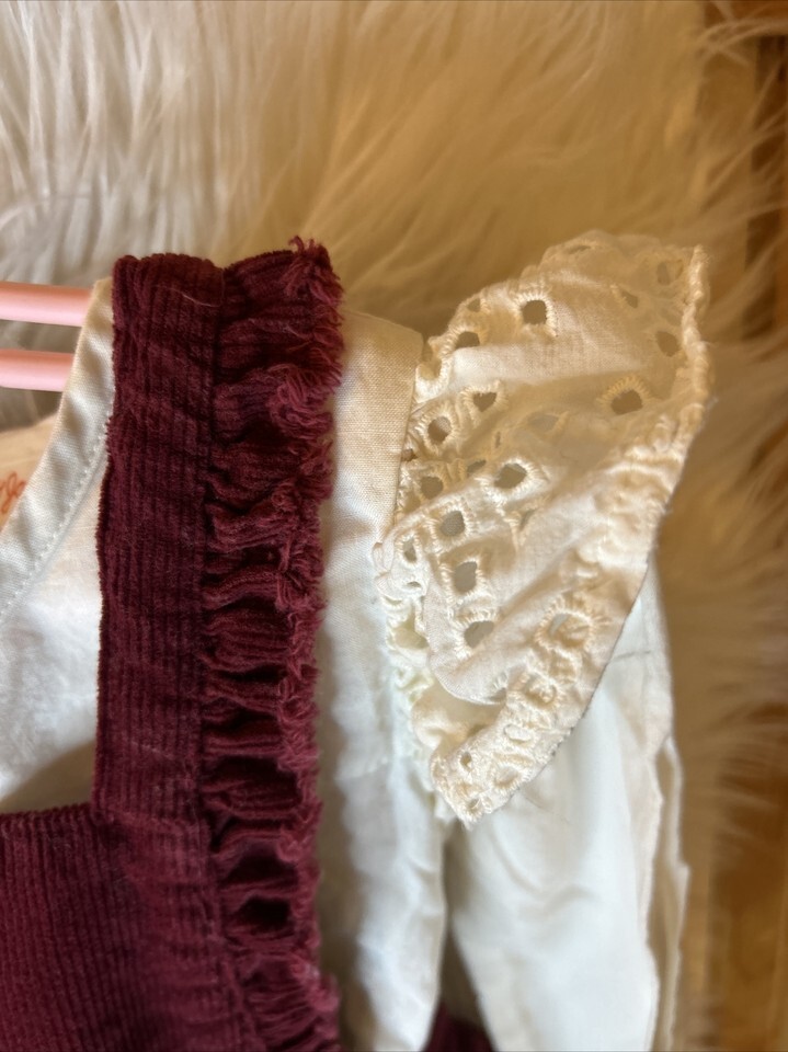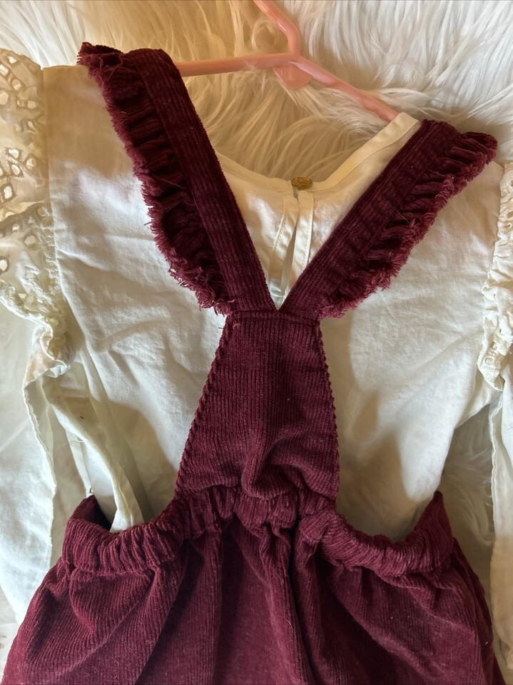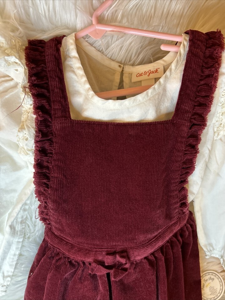 - Cat & Jack Girls Maroon Corduroy Overall Dress & Long Sleeve Top, 4T, Pre-Owned