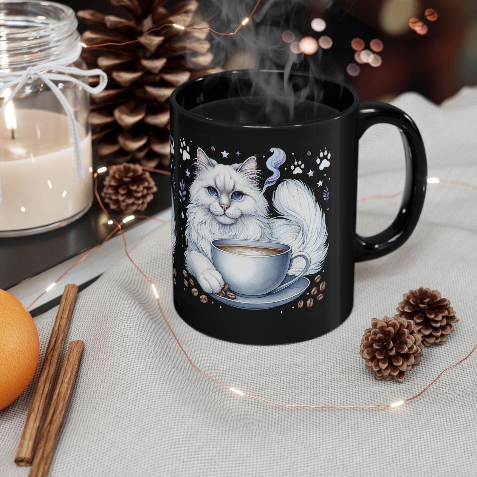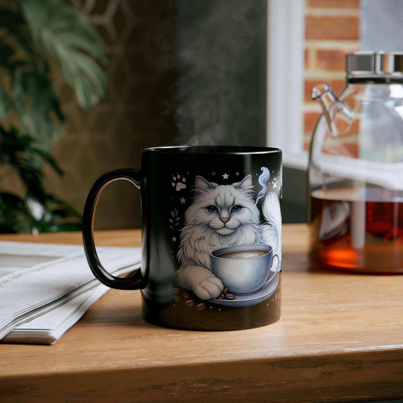 Introducing a delightful Black Mug, perfect for cat lovers and coffee enthusiasts alike! This glossy ceramic mug features vibrant, eye-catching designs that bring whimsy and charm to your morning routine. Ideal for cozy home settings, it adds a touch of personality to your kitchen or office desk. This mug is not just a drinking vessel; it's a conversation starter, making it perfect for gifting on holidays like Christmas, birthdays, and even casual gatherings. Enjoy your favorite beverages in style while celebrating your love for felines! Suitable for adults, this mug is perfect for those seeking joy in everyday moments.
