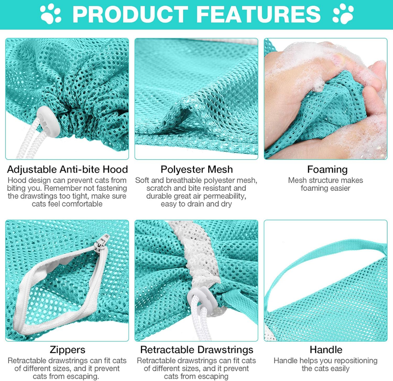 Practical design: the cat bathing bag adopts zipper design that it allows your cat to release only one paw at a time, which makes it easy for you to trim cat's nails, and there comes with 4 adjustable drawstrings for fixing your cat, preventing you from being bitten by its teeth or scratched by its pointed claws