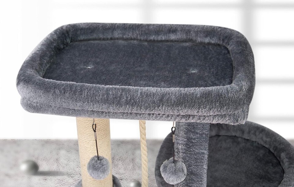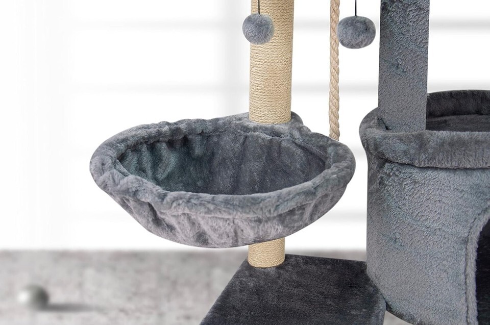 ?Endless Fun with Hanging Balls?: Watch your kitties go wild with excitement! The cat tree comes with hanging balls that provide endless fun and entertainment,keeping your cats engaged and happy for hours. These pompon can be replaced easily, ensuring that the excitement never ends!