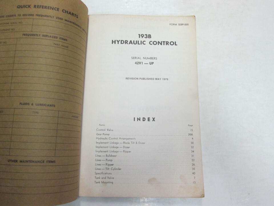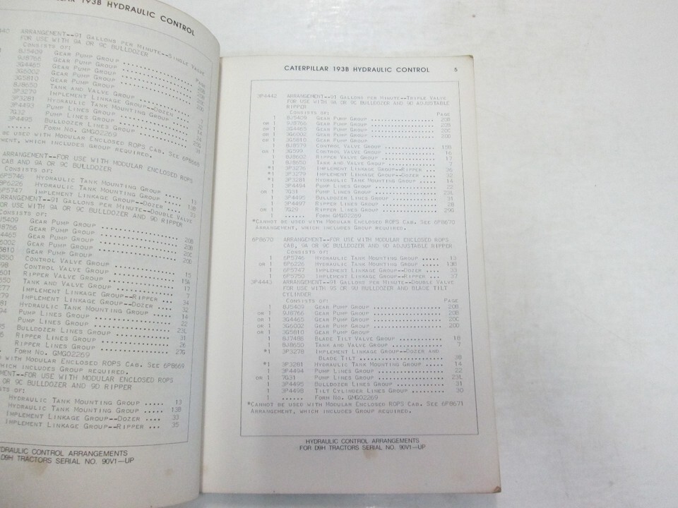 CATERPILLAR 193B HYDRAULIC CONTROL PARTS BOOK MANUAL 42V1-UP STAINED