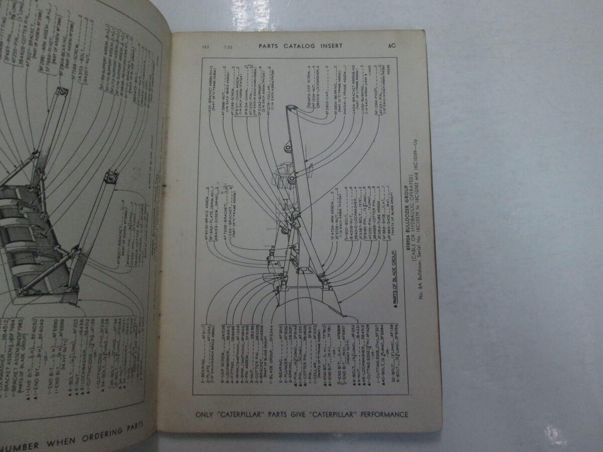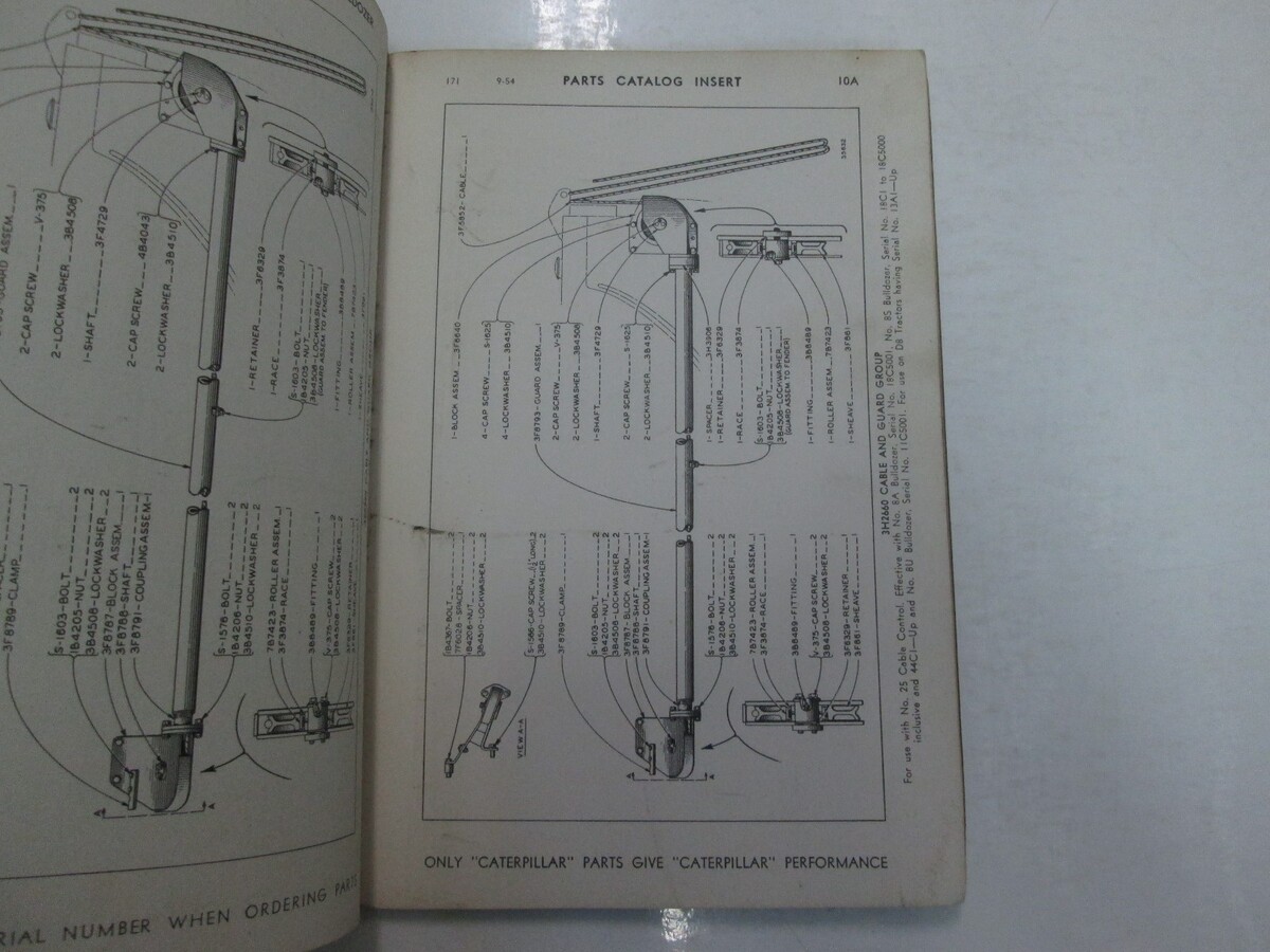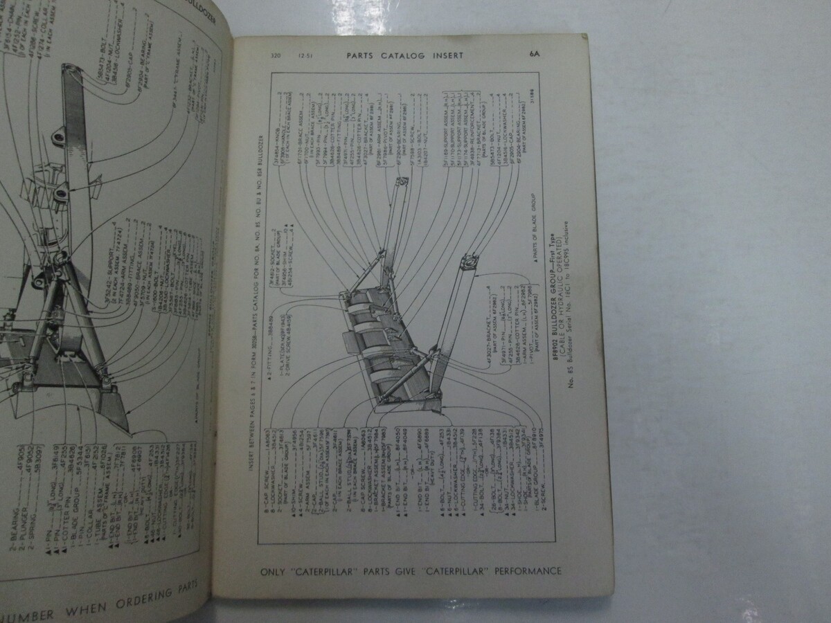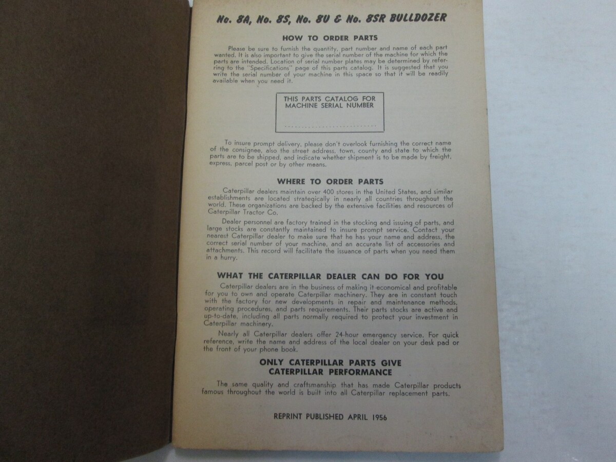 Caterpillar 8A 8S 8U 8C Bulldozer Parte Libro 1965 28E4839 Fino Worn Vetrata OEM