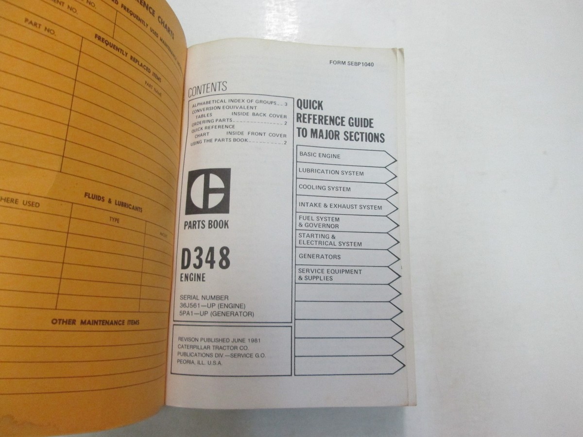 - Caterpillar D348 Engine Parts Manual STAINED WORN SEBP1040 FACTORY OEM DEAL