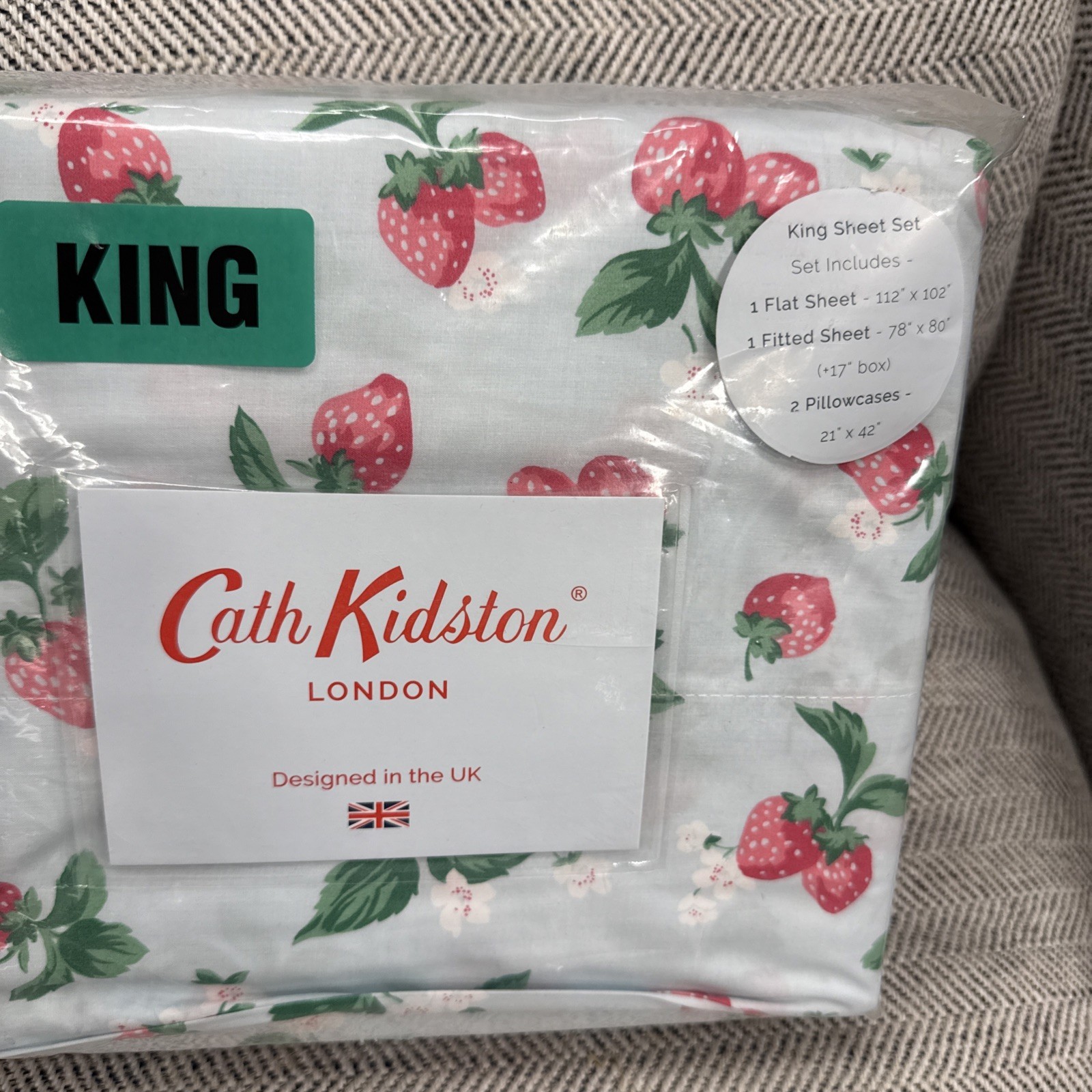 - Cath Kidston Summer Strawberry Duckegg King Sheet Set 4 ~New