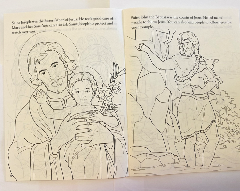 You are purchasing a very nice paperback coloring book of favorite catholic saints. It contains 32 pages and comes from Aquinas Kids with the most beautiful illustrated pictures. It measures: 10.25" x7.50". Took as many pictures of possible so you can see what the inside looks like.