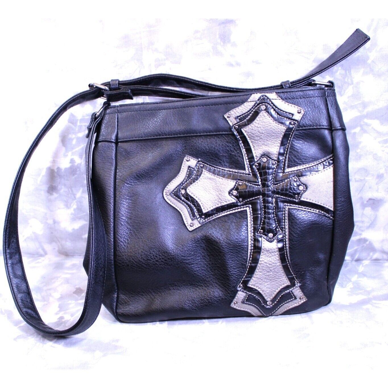 - Cato Embellished Black Cross Purse With Zippered Top and Interior Pockets