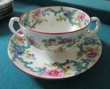 - CAULDON ENGLAND CONSOME SOUP CUP SAUCER VICTORIA PATTERN LACE AND FLOWERS c1904