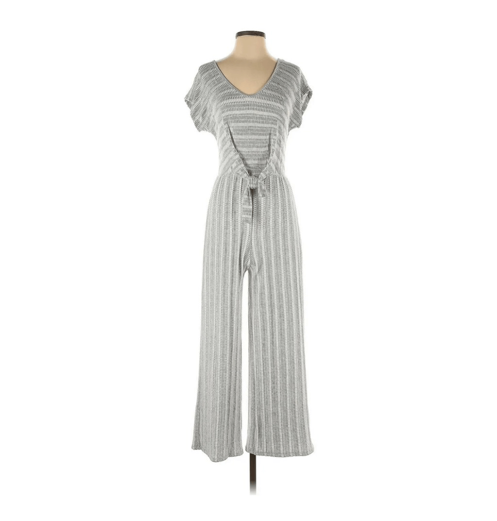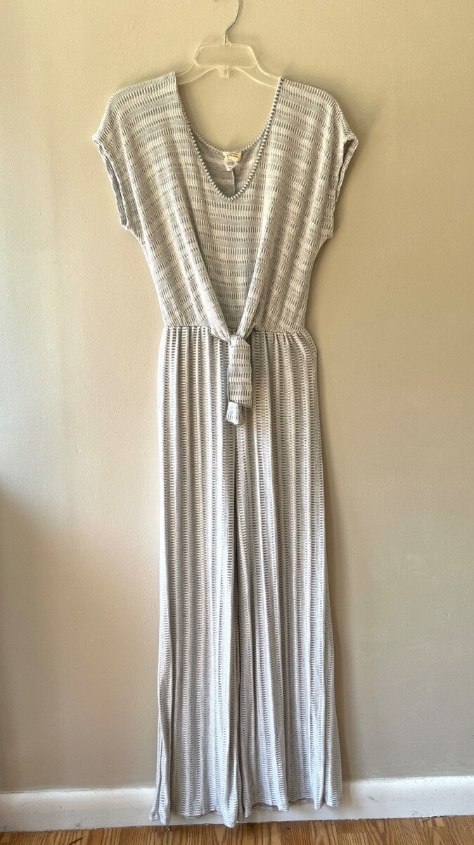 Caution To The Wind Sz L Jumpsuit Gray White Striped V Neck Stretch Soft