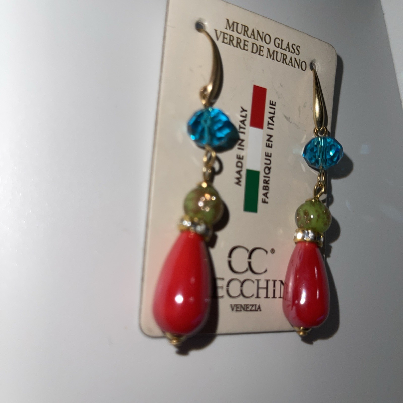 - CC ZECCHIN VENEZIA MURANO GLASS dangle earrings.Gold tone Colorful Glass beads