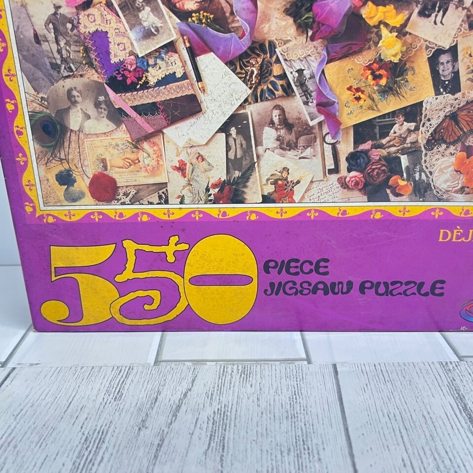 Enjoy a nostalgic challenge with this vintage Ceaco Deja View 550 Piece Jigsaw Puzzle featuring the stunning collage artwork of Judith Baker Montano. This puzzle brings together vintage photographs, lace, flowers, and keepsakes in a richly detailed composition that puzzle enthusiasts and collectors will love.