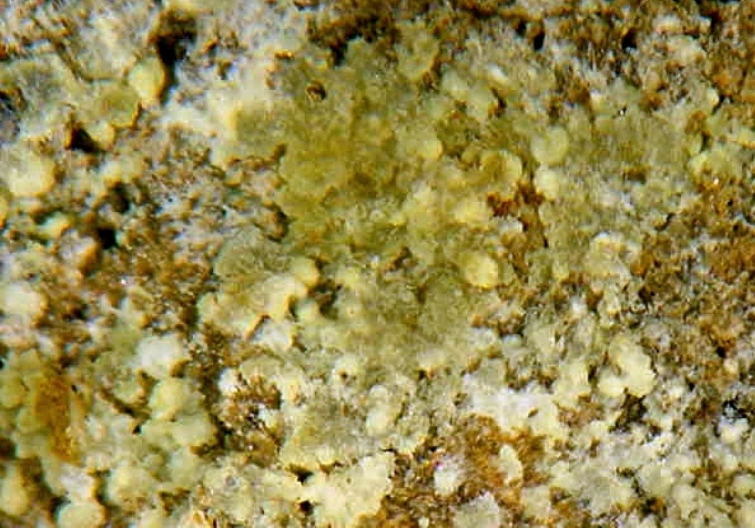 A rich miniature size specimen of Cejkaite from the Apex Mine. This specimen shows a rich carpet of small globular crystalline aggregates on matrix. This material was collected about 15 years ago and represented the first find of the mineral in the western hemisphere. I bought the mine run of uranium minerals collected at that time, and haven't seen more on the market since.