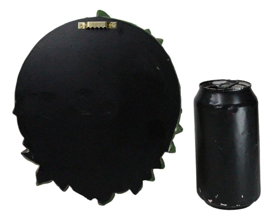 ? This greenwoman ent wall decor measures 8"High, 7" Wide and 1.5"Deep approximately. It weighs about 1.25 pounds.