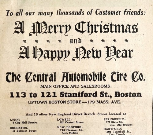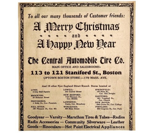 - Central Automobile Tire Co Merry Christmas Advertisement 1927 Boston DWEE3B