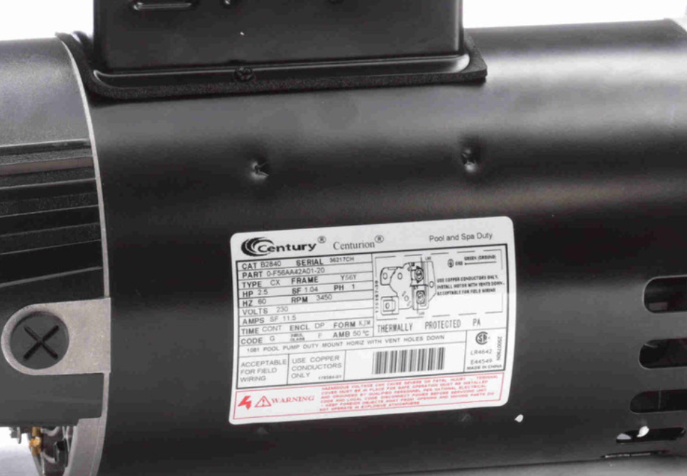 - Century B2840, 0-F56AA42A01-20, 36217CH, Pool and Spa Motor, 2.5 HP, 3450 RPM