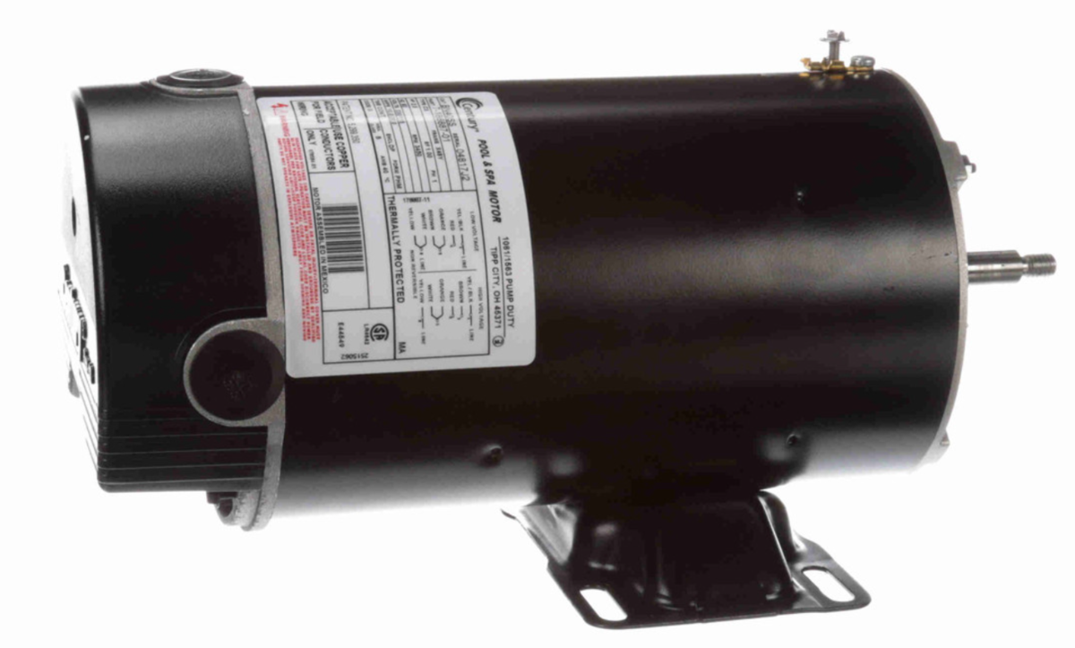 The Century BN40SS (7-166887-01, 04817J2) Pool Pump Motor is a powerful 2 HP, 3600 RPM motor engineered for demanding pool and spa applications. Designed with an X48Y frame, this motor features a capacitor start?induction run system for strong starting torque and reliable continuous performance. Its stainless steel threaded shaft, sealed ball bearings, and rolled steel construction ensure long-lasting durability in wet environments. With four thru-bolts on a 5.146" bolt circle and 48/56 base mounting, installation is flexible and compatible with many popular pump models. Fully compliant with UL 1081, this motor delivers dependable, safe performance season after season.
