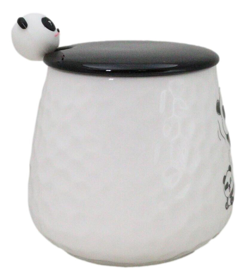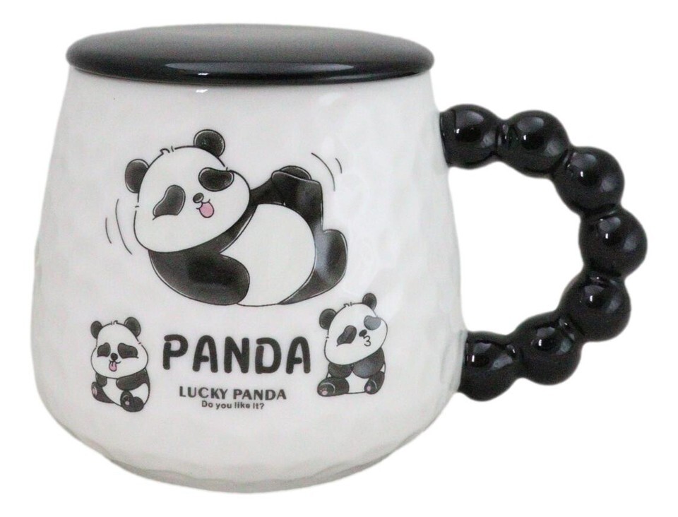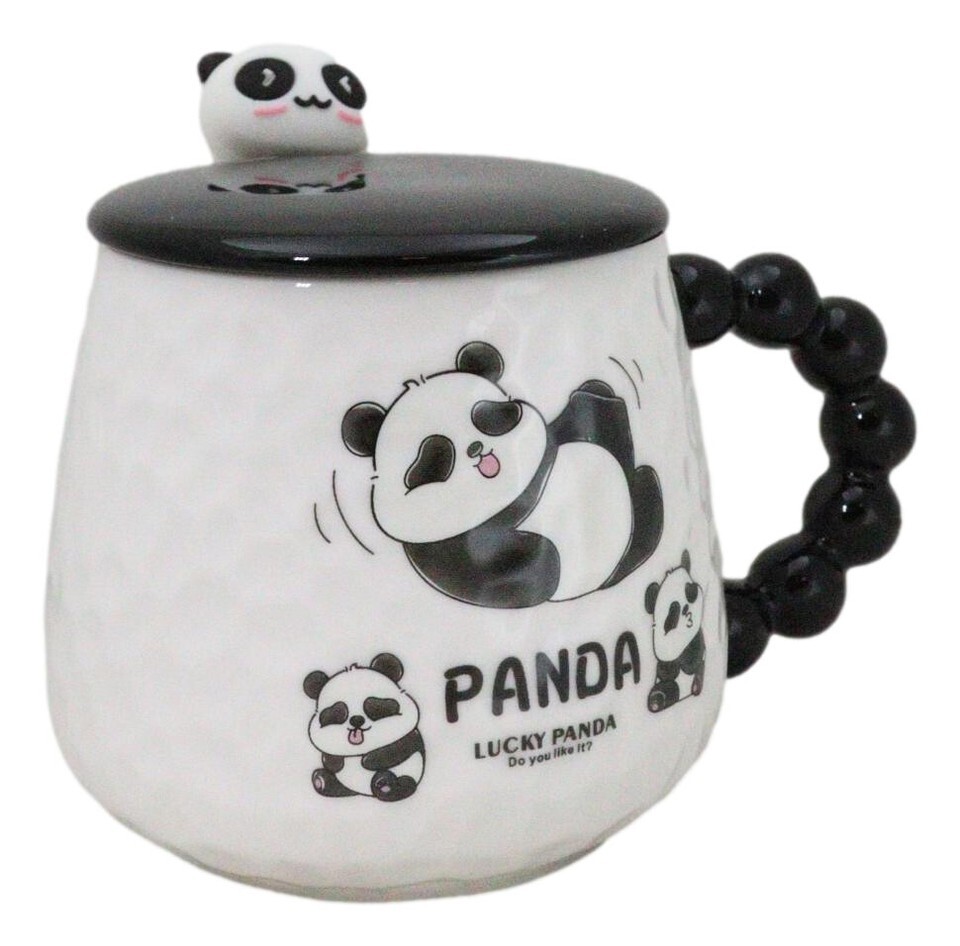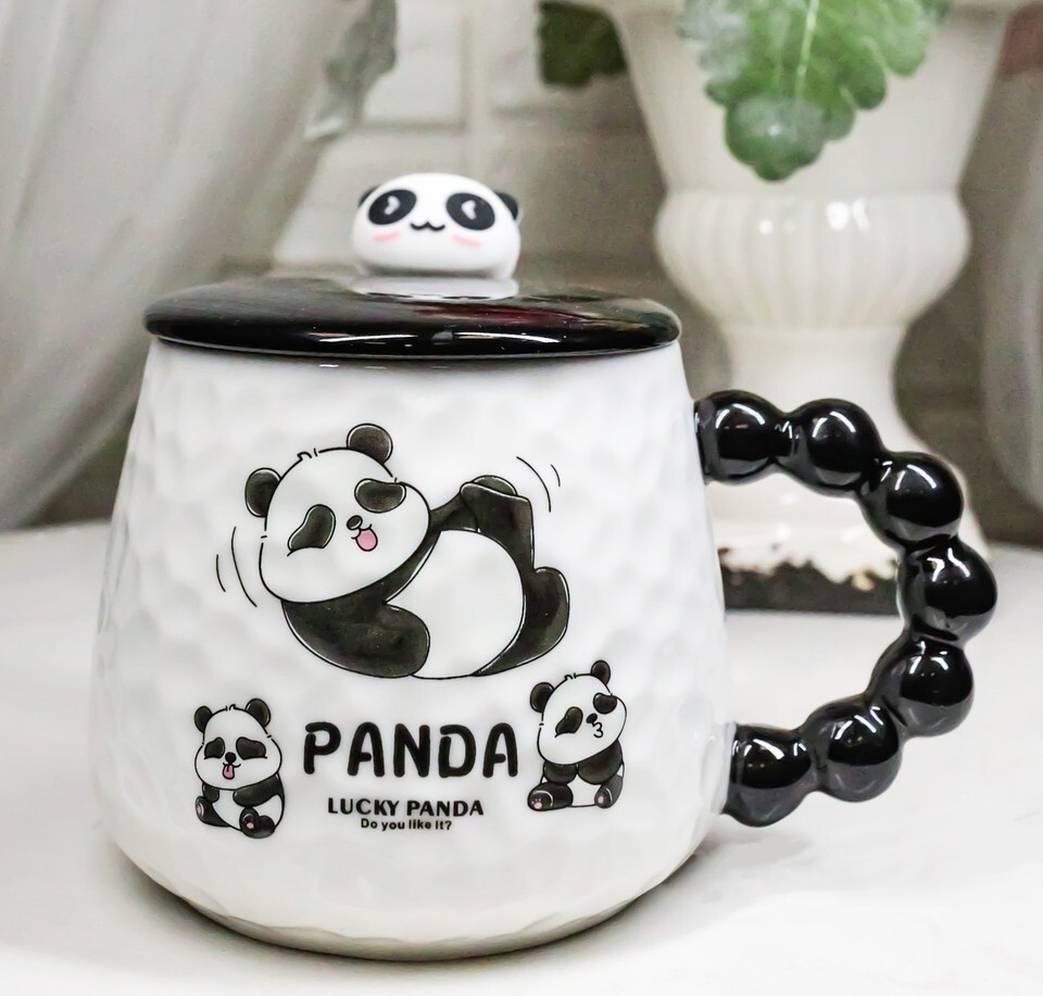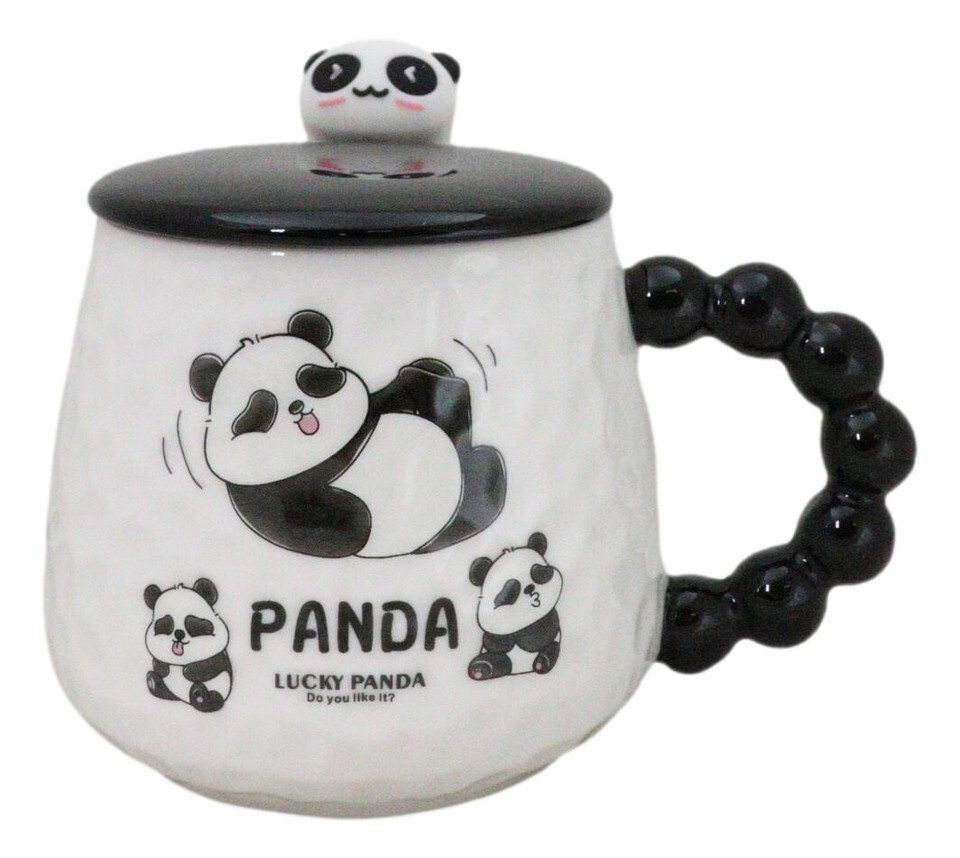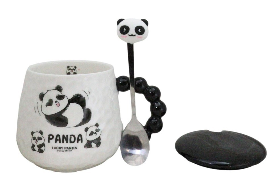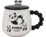 - Ceramic Cute Lucky Panda Bear Cartoon With Lid And Panda Head Spoon Mug Cup