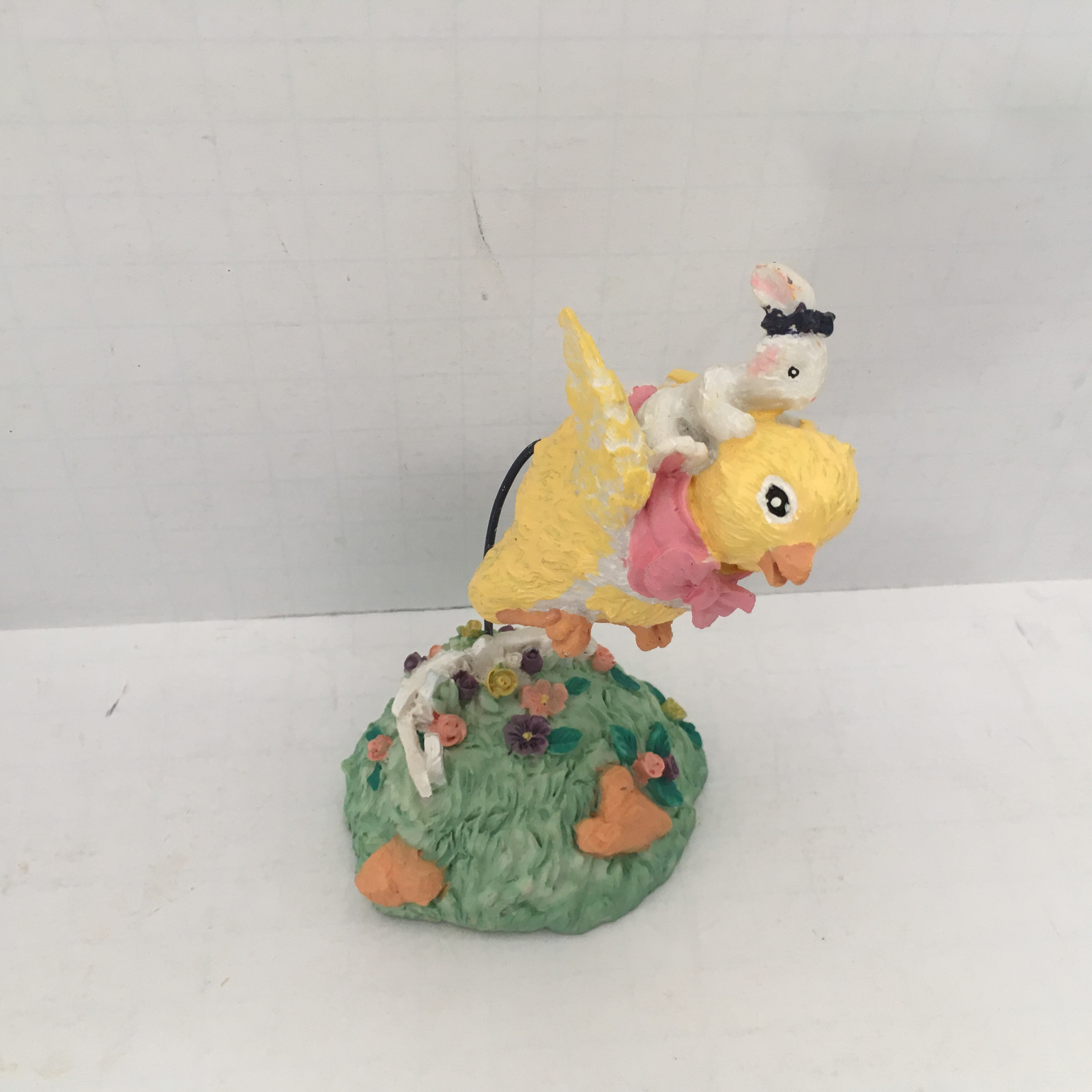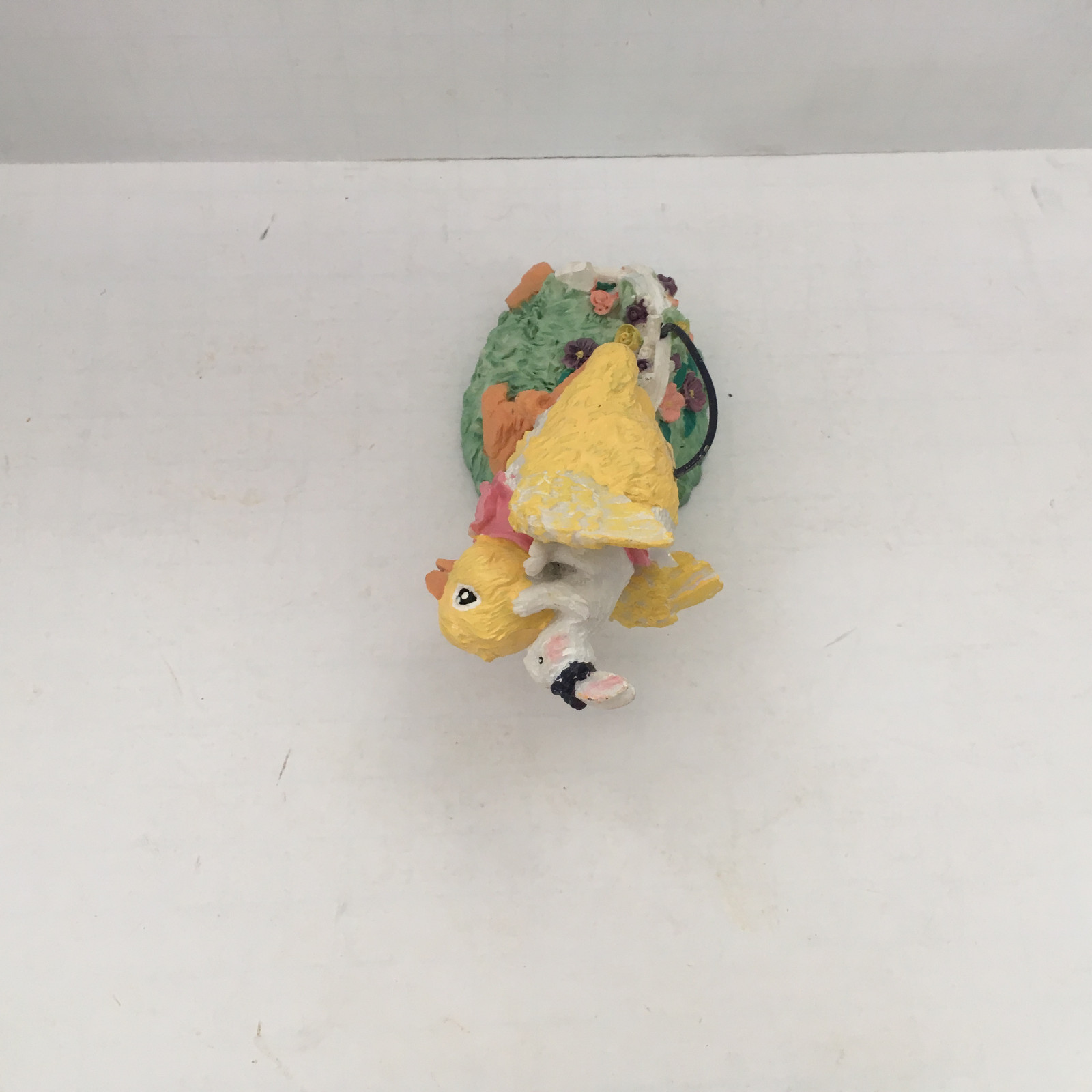 - Ceramic vintage Easter figurine flying chick peep with bunny spring decor