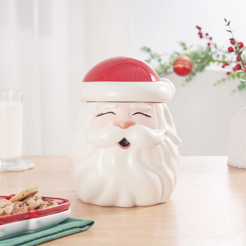 Ceramics Santa Cookie Jar, Ceramic Cookie Jar for Kitchen Counter, Great for Cookies, Treats Holiday Decor