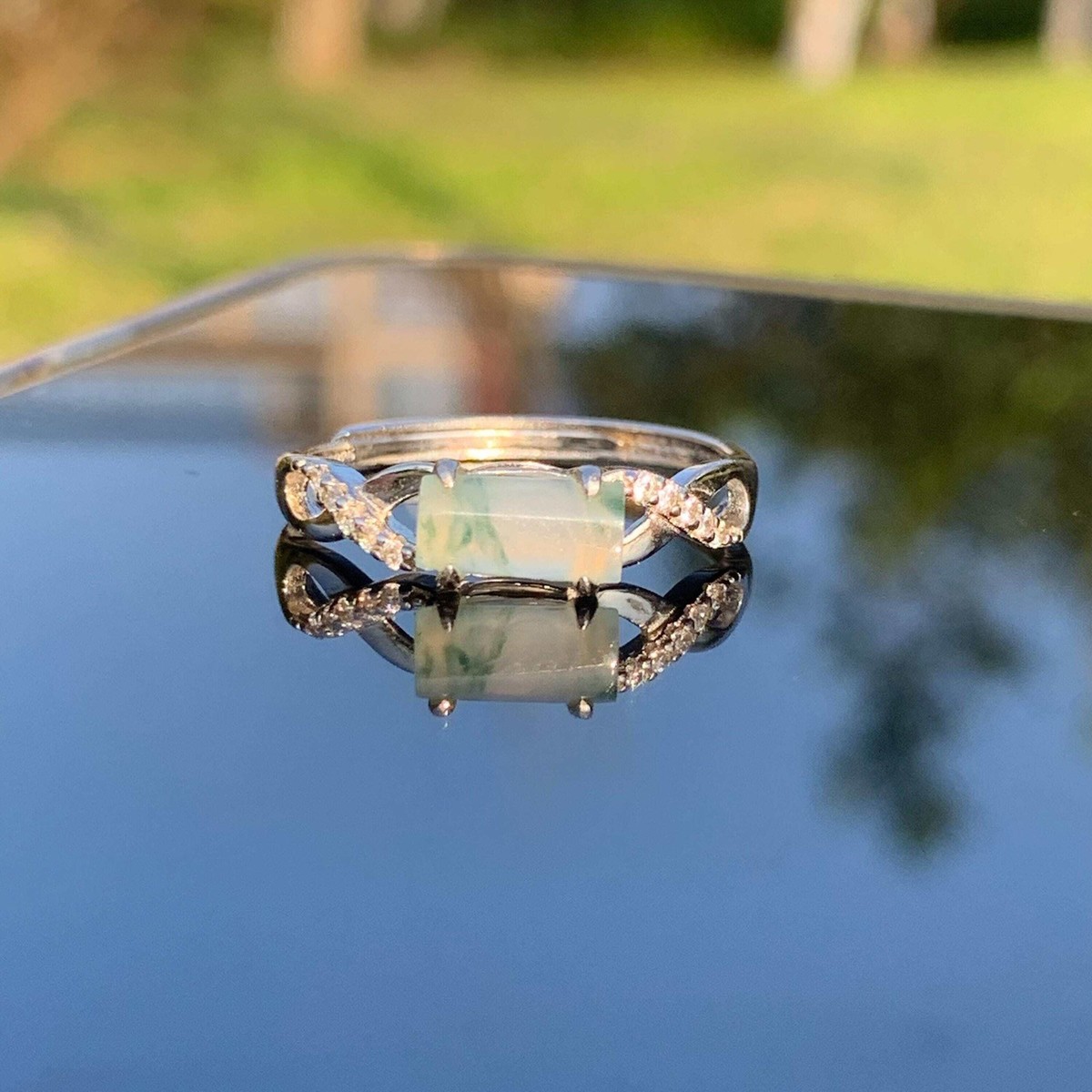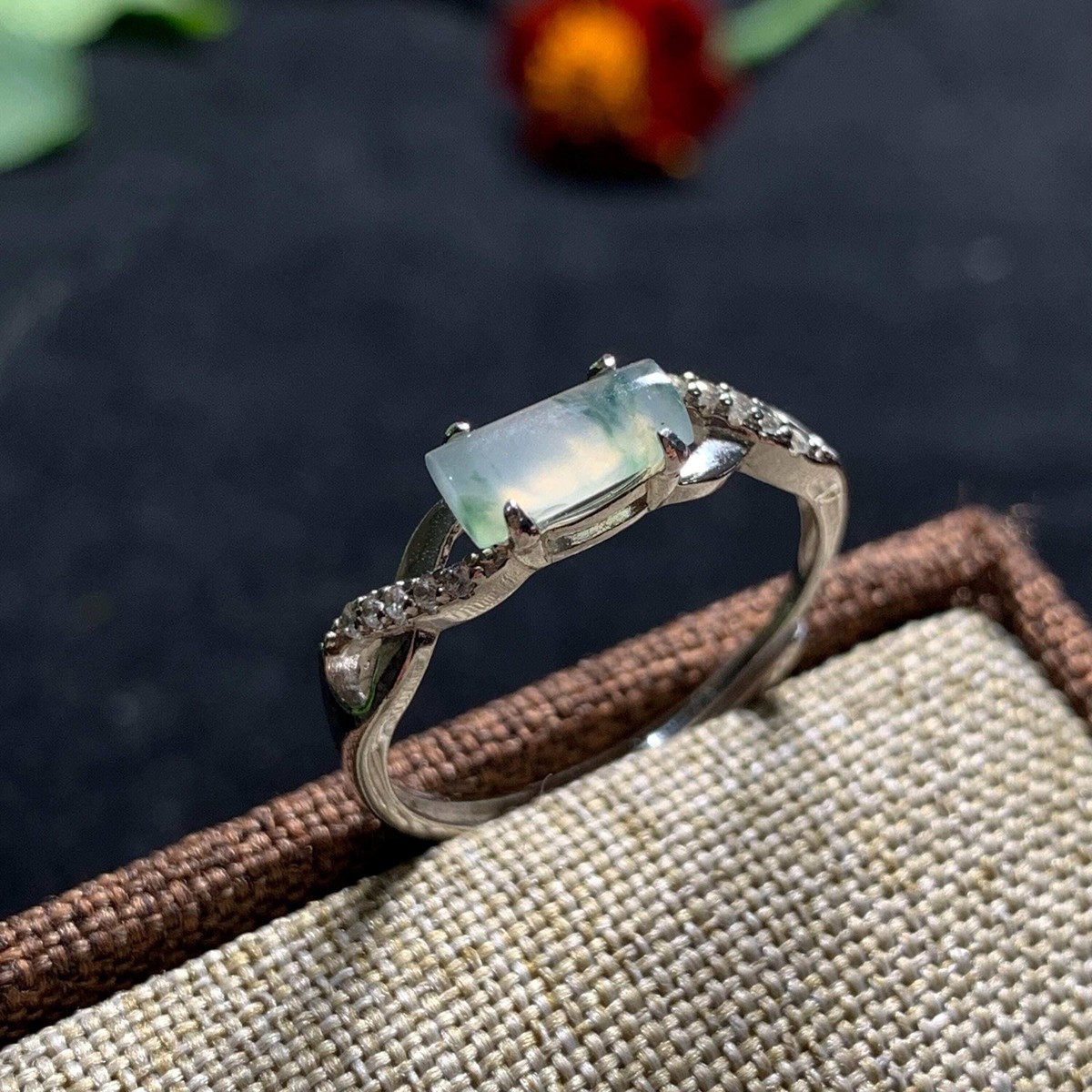 Certified A-Grade Natural Untreated Burmese Cylinder Icy White Green ???? S925 Minimalist Design Ring SL252X11