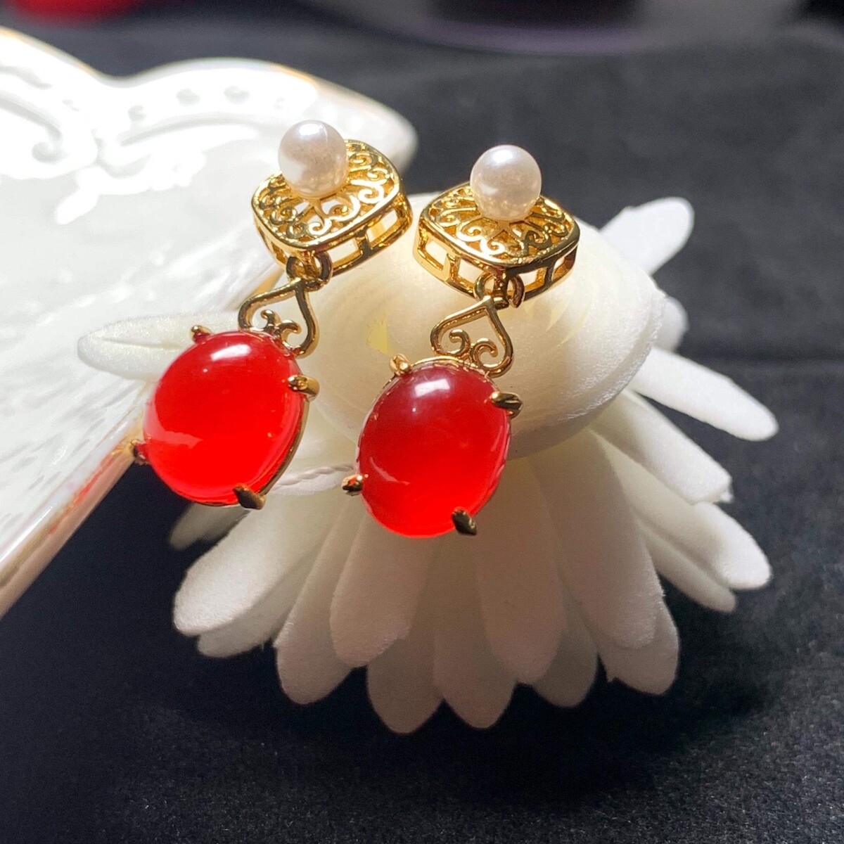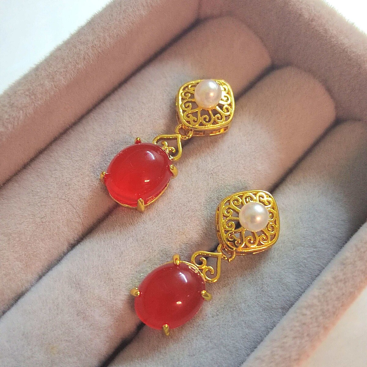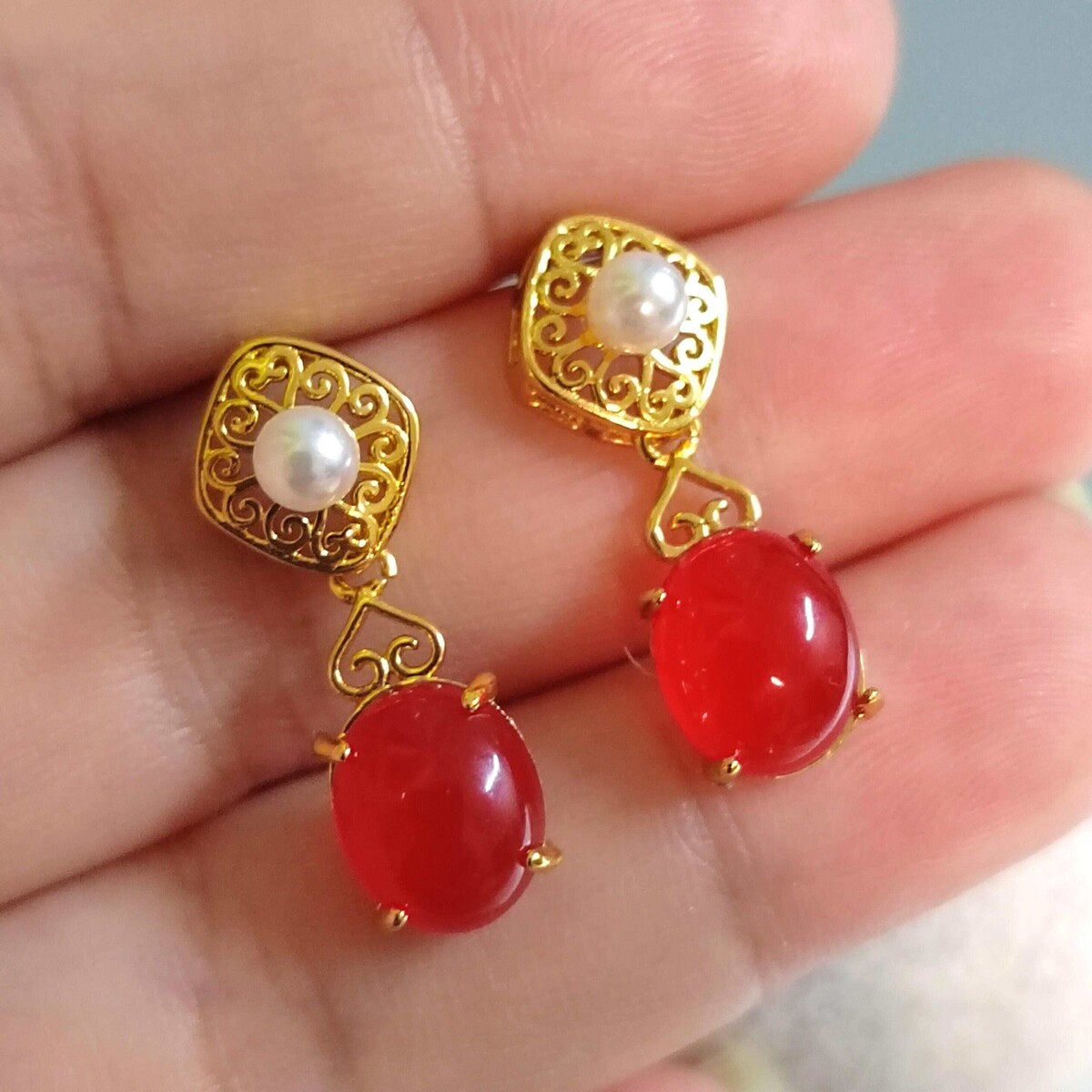 ? Certified Baoshan Nanhong Red Agate Freshwater Pearl EarringsNatural Untreated Classical Chinese Filigree S925 Sterling SilverIcy Red Elegance ? Cultural Heritage ? Collector-Grade CraftsmanshipIndulge in timeless sophistication with these certified Baoshan Nanhong Red Agate earrings?featuring vivid icy red cabochons paired with luminous freshwater pearls. Handcrafted in classical Chinese filigree style, this set blends gemstone rarity, cultural symbolism, and heirloom-level artistry. ? Why These Earrings Are Rare Special? ? True Baoshan Origin: Sourced from closed mines in Yunnan, Baoshan Nanhong is among the rarest forms of southern red agate? ? Icy Red Hue: Displays vivid saturation and translucency that cannot be convincingly dyed or replicated? ? Cultural Legacy: Treasured in Chinese tradition for vitality, prosperity, and emotional harmony? ? Filigree Craftsmanship: Inspired by ?????? (classical wire inlay technique), each piece is a wearable work of art? ? Collector Appeal: Certified natural origin, paired with freshwater pearls and S925 silver?ideal for connoisseurs and meaningful gifting ? Product Details? Gemstones: Certified Baoshan Southern Red Nanhong Agate Freshwater Pearl? Color: Icy Red? Stone Size: 7.6 9.7 5mm (each)? Earring Length: 23.4 8.8mm (including setting)? Metal: Solid S925 Sterling Silver? Craftsmanship: Classical Chinese filigree technique? Style: Dangle drop earrings? Certificate No.: Z2412003595 (QR-verifiable) ? Symbolism Benefits? ?? Emotional Harmony: Believed to reduce stress and nourish the heart? ? Vitality Strength: Traditionally associated with circulation and energy? ? Gift of Meaning: Symbolizes love, prosperity, and strength?ideal for milestones and anniversaries ? Packaging Includes?? Authenticity Certificate + QR Code?? Elegant Jewelry Box?? Jadeite Treatment Oil?? Jewelry Pouch?? Cleaning Cloth?? Zip-lock Storage Bag?? Free Worldwide Shipping with Tracking ?? Care Instructions? Avoid perfumes, hairsprays, and harsh cleaning agents? Store in the provided pouch or box to prevent scratches? Clean gently with the included soft cloth? Remove during swimming or strenuous activity