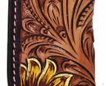 Keep your favorite knife close with Challenger handcrafted full-grain top quality leather belt sheath. Made to endure everyday use for years to come. This knife holder comes accented with hand-tooled antique floral and painted sunflower design. The white contrast stitching completes the western look. Sheath measures approximately 4" long x 2" wide, and features a 2" wide belt loop that securely fits most belts. Designed for most pocket knifes.