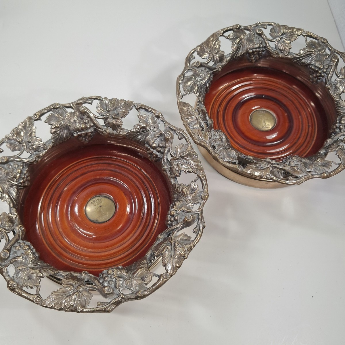 Champagne Wine Bottle Coaster set 2 Grape Vines ivy leaves silver plate holder