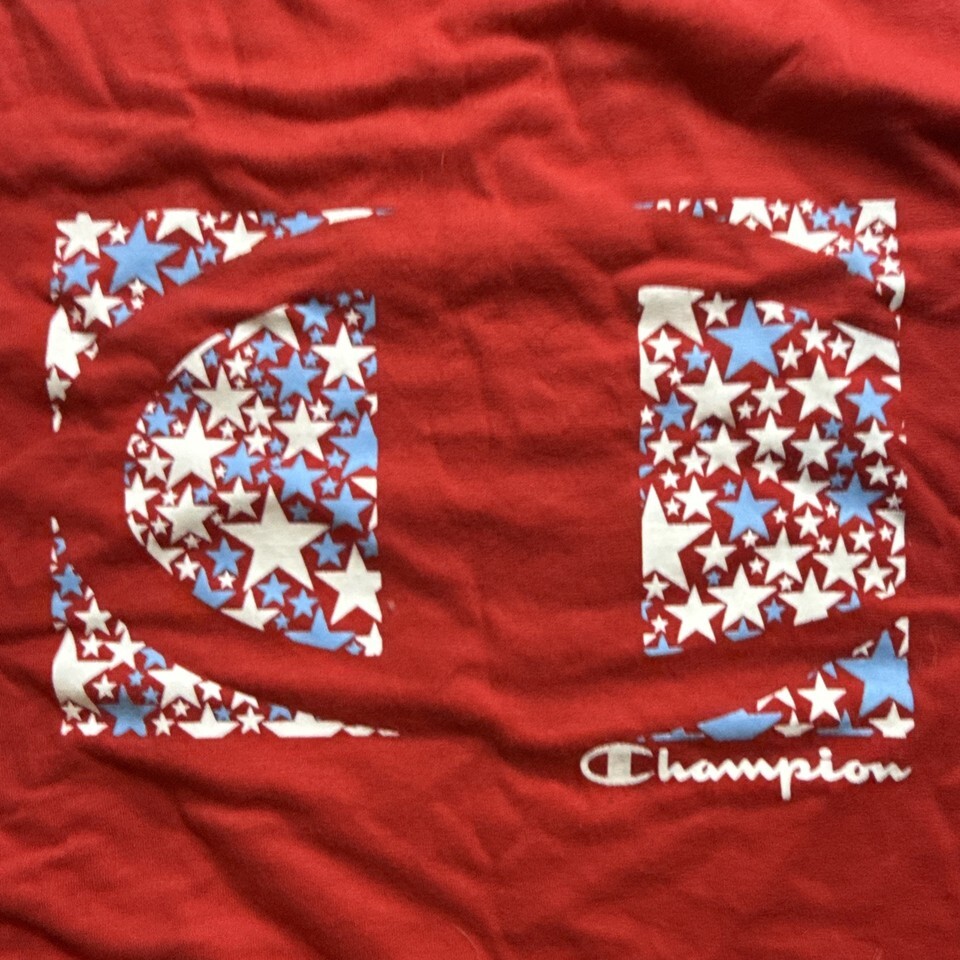 - Champion Star Pattern Print Crew Neck Short Sleeve Logo T-Shirt XL Women Red