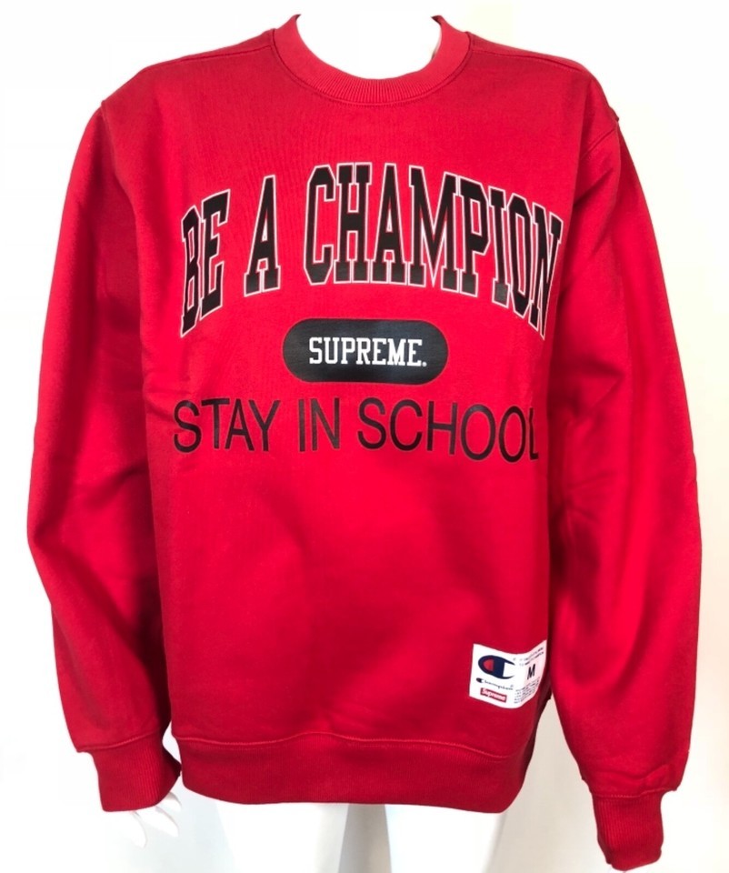 - Champion x Supreme Stay In School Sweatshirt Red sz M NWOT Authentic
