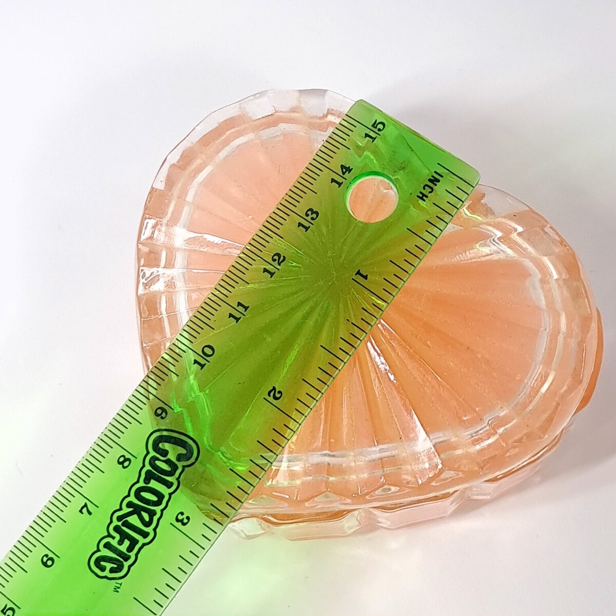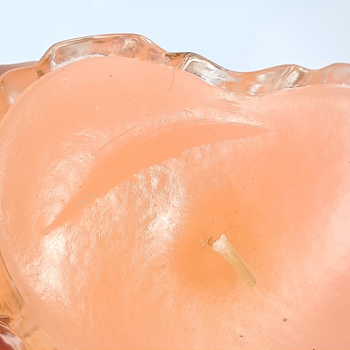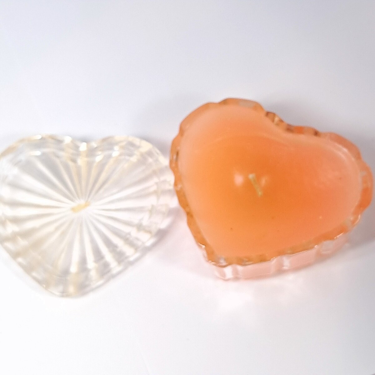 Small glass heart candle with lid. Small indent in the wax otherwise excellent condition.