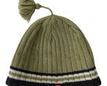Warm and timeless Chaos wool beanie crafted in Canada. This ribbed knit hat features an olive green body accented with cream and black stripes along the brim and a fun tassel at the top. Soft, insulating 100% wool construction offers excellent comfort for winter weather or outdoor activities
