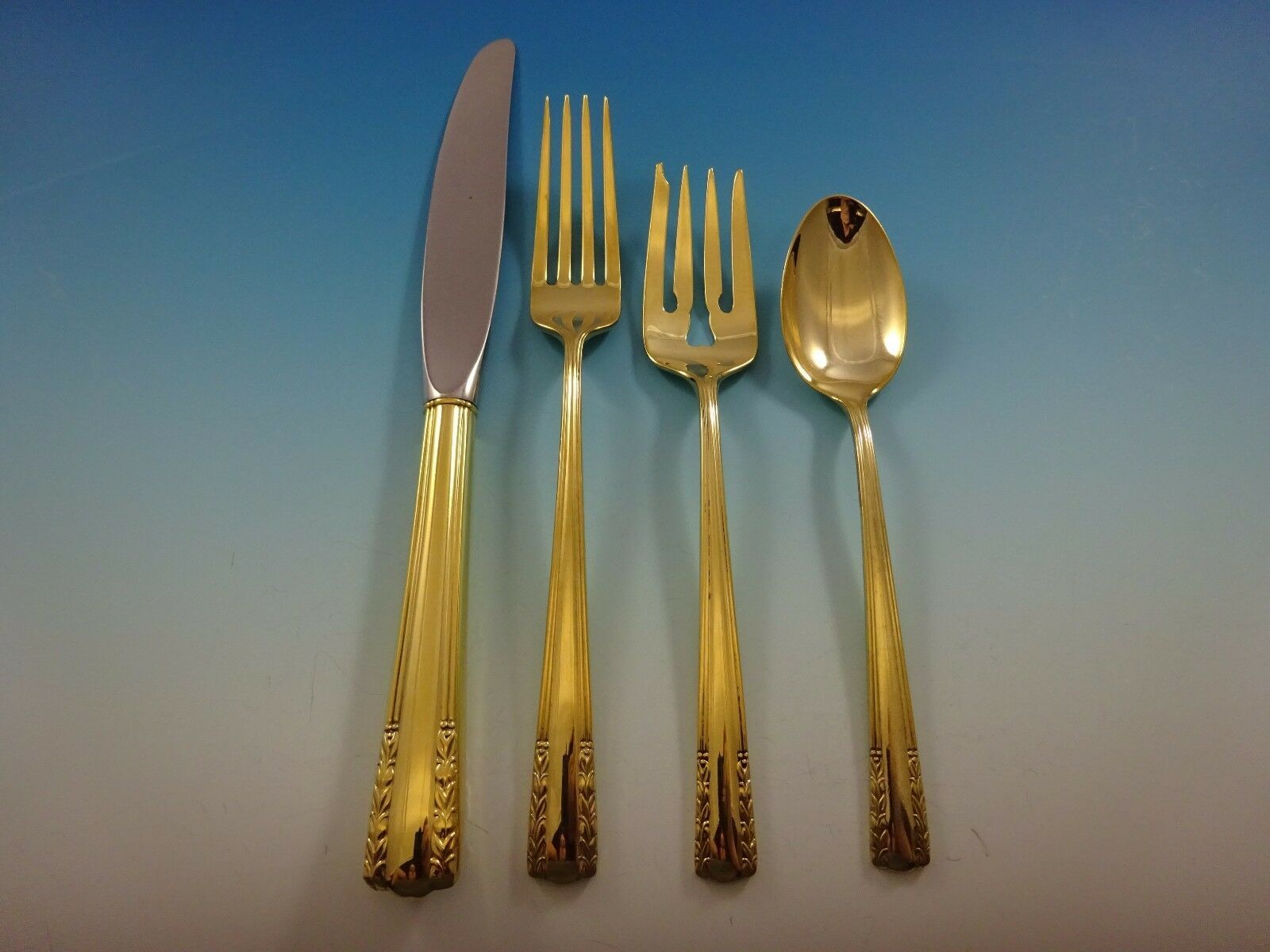 - Chapel Bells Gold by Alvin Sterling Silver Flatware Service Set 8 Vermeil 32 Pcs