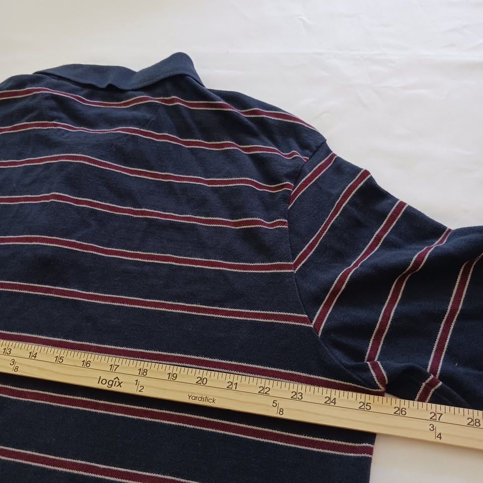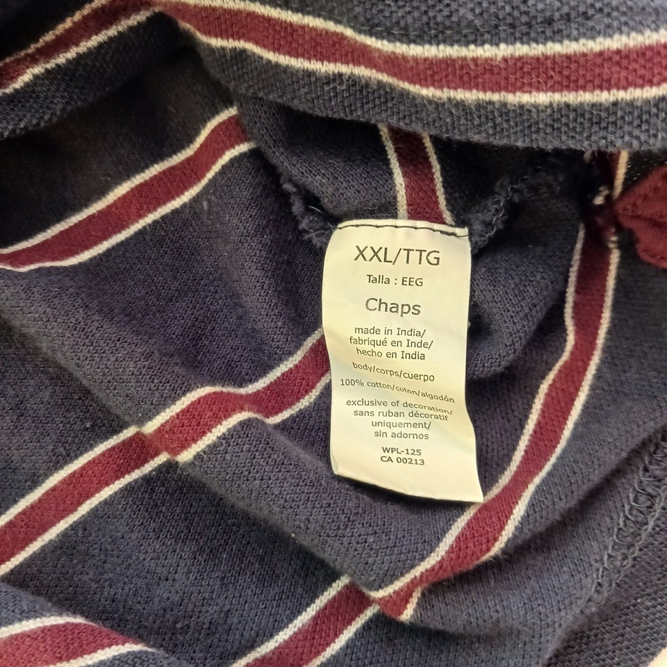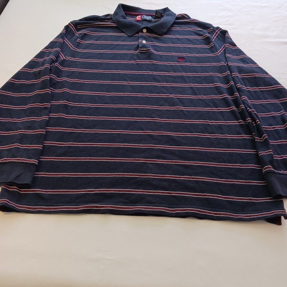 - Chaps Long Sleeve Striped Men's Polo Cotton Blue Shirt 1/4 Button Size 2XL