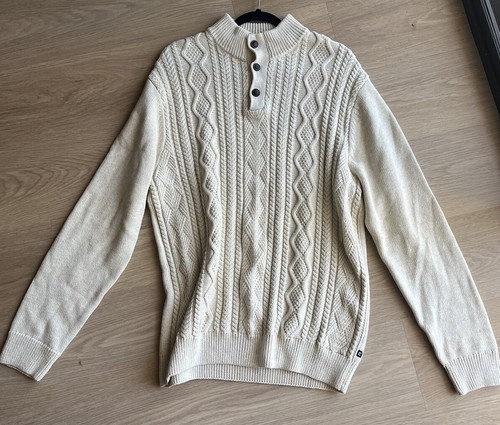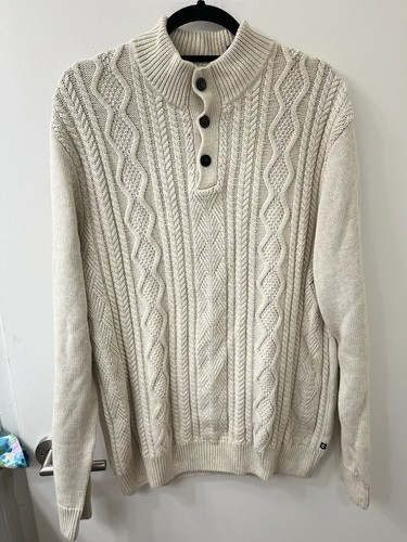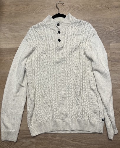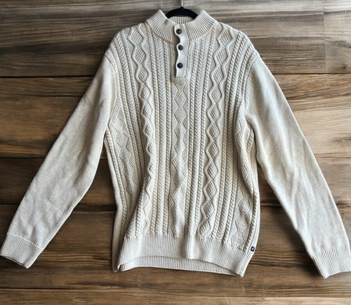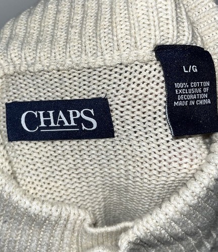 - Chaps Men's Ivory Cream Sweater Pullover Cable Knit Size Large Cotton Button EUC