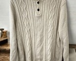 Chaps Men's Ivory Cream Sweater Pullover Cable Knit Size Large Cotton Button EUC