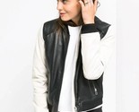 Chaqueta de cuero blanca y negra hecha a mano real de motociclista para mujer 100 % piel de cordero motocicleta/nosotros