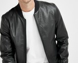 - Chaqueta de cuero negra para hombre Bomber Pure Lambskin hecha a mano elegant...