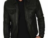 Chaqueta de cuero negro para hombre piel de cordero suave genuino slim fit...