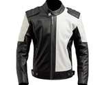 Chaqueta de motociclista genuina de cuero de cordero elegante blanca hecha a mano para hombre/SU