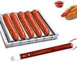 The hot dog roller made by durable stainless steel, 6 stick design holds up to 5 hot dogs or sausages at a time, grills evenly with no charring quickly right on top of the grill.