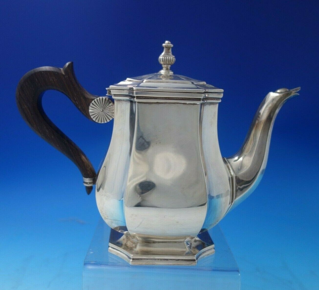 Gorgeous Charles Tirbour Orfevre .800 silver four-piece tea set with wood handles made in Paris. This set includes: