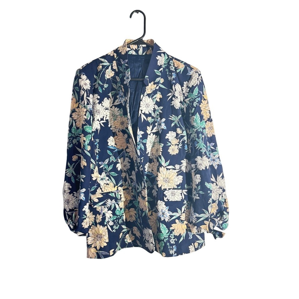 Step into style with this stunning Charlotte London blazer, featuring an elegant navy base with a vibrant all-over floral print in yellow, ivory, green, and blue tones. The open-front design, full lining, and lightly gathered sleeves give this jacket a tailored yet breezy fit perfect for both casual chic and workwear. It?s made of 100% polyester, offering a lightweight, comfortable feel with a luxe look.