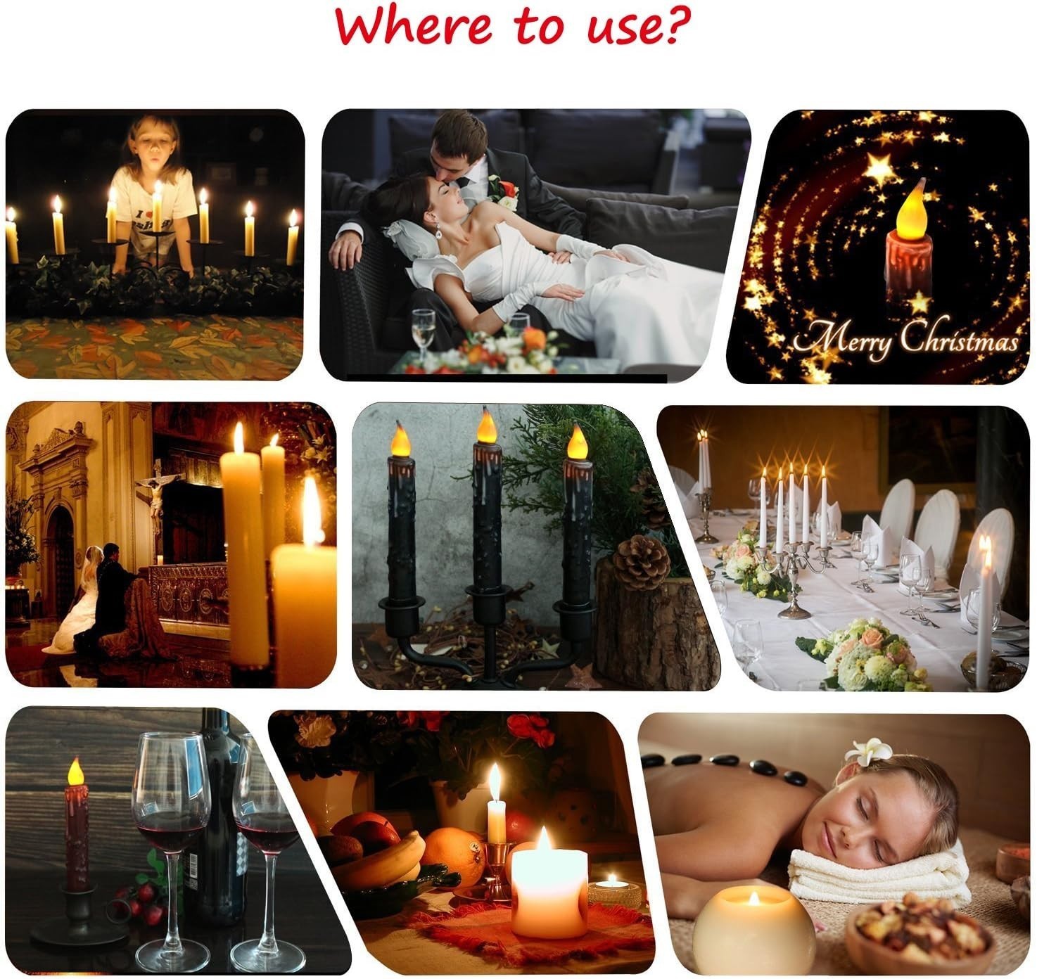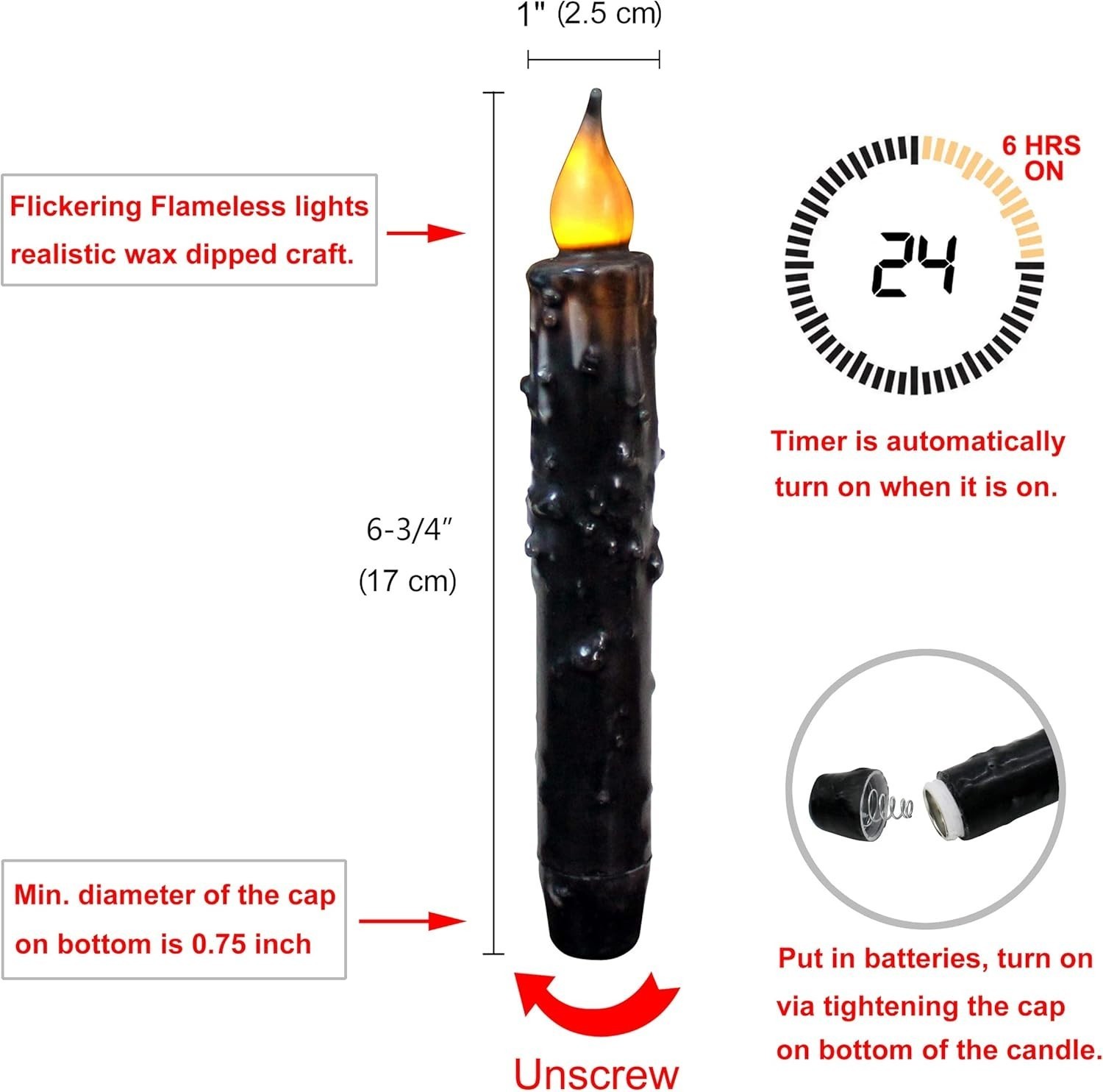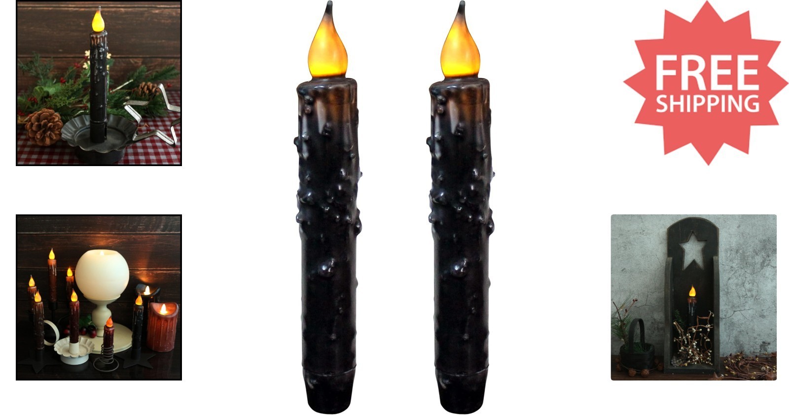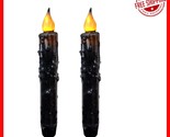 - Charming 2 PCS Flameless Taper Candles - Hand-Dipped Real Wax, Matte Black