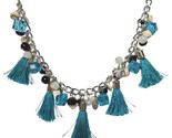 - Charming Charlie Silver Tone Necklace Teal Aqua Blue Tassel Beaded Square Shell
