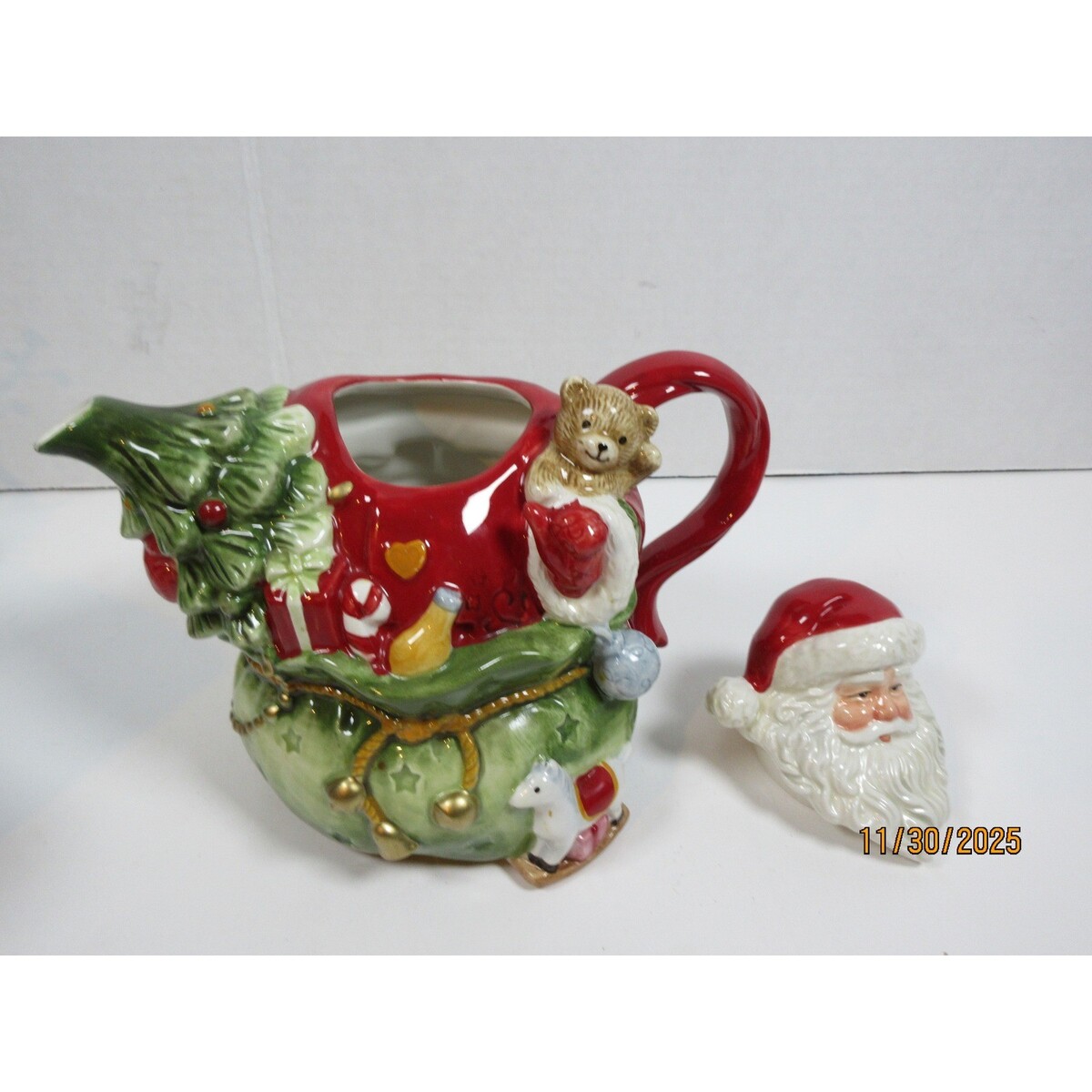 - Charming Santa Claus Christmas Teapot with Teddy Bear and Toys Gift Bag Ceramic