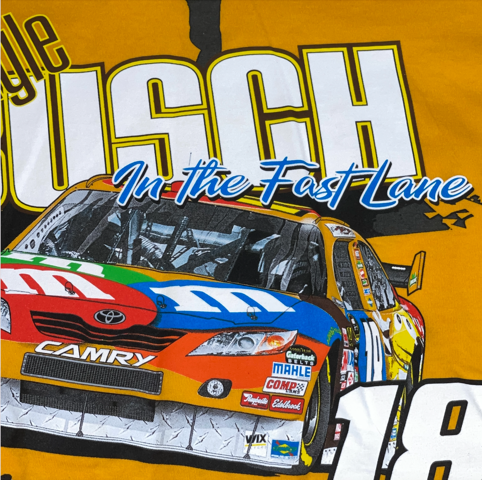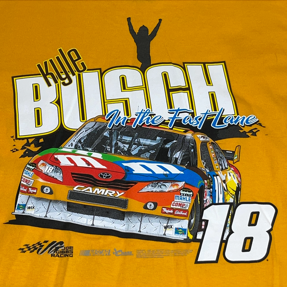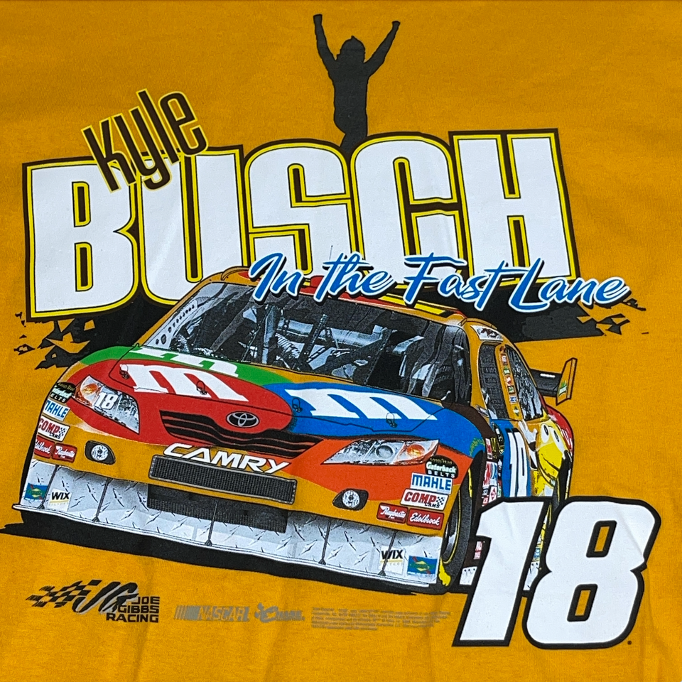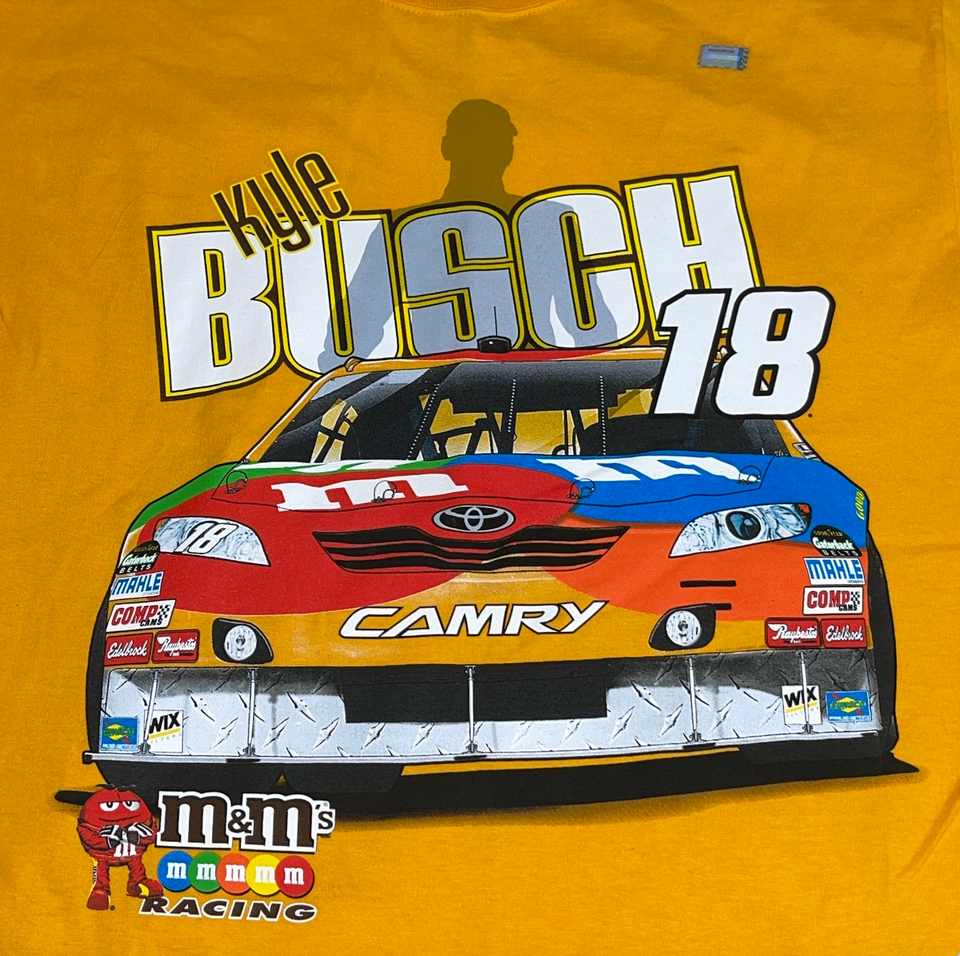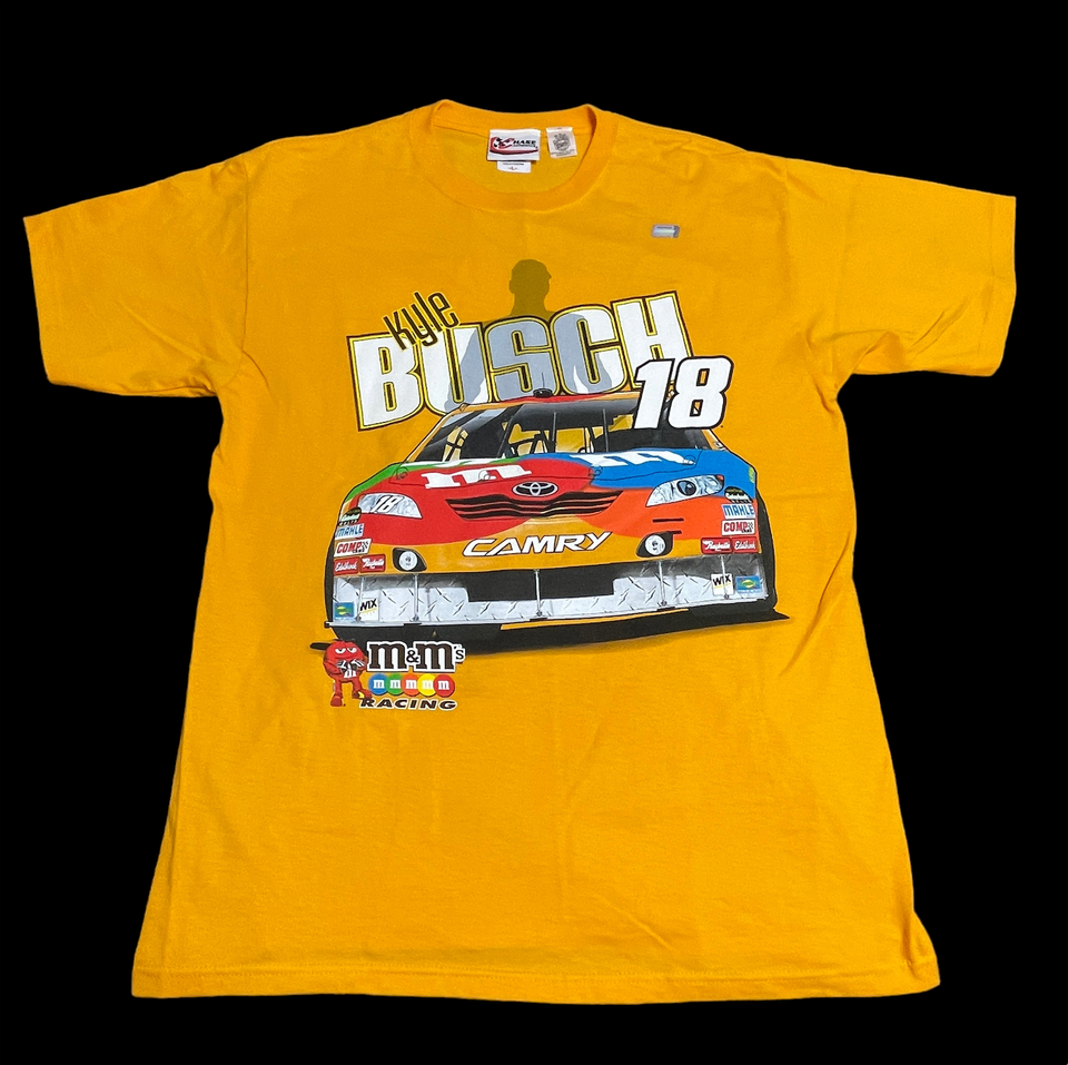- Chase Authentics Shirt Mens Yellow Kyle Busch #18 M&MS Joe Gibbs Racing Graphic