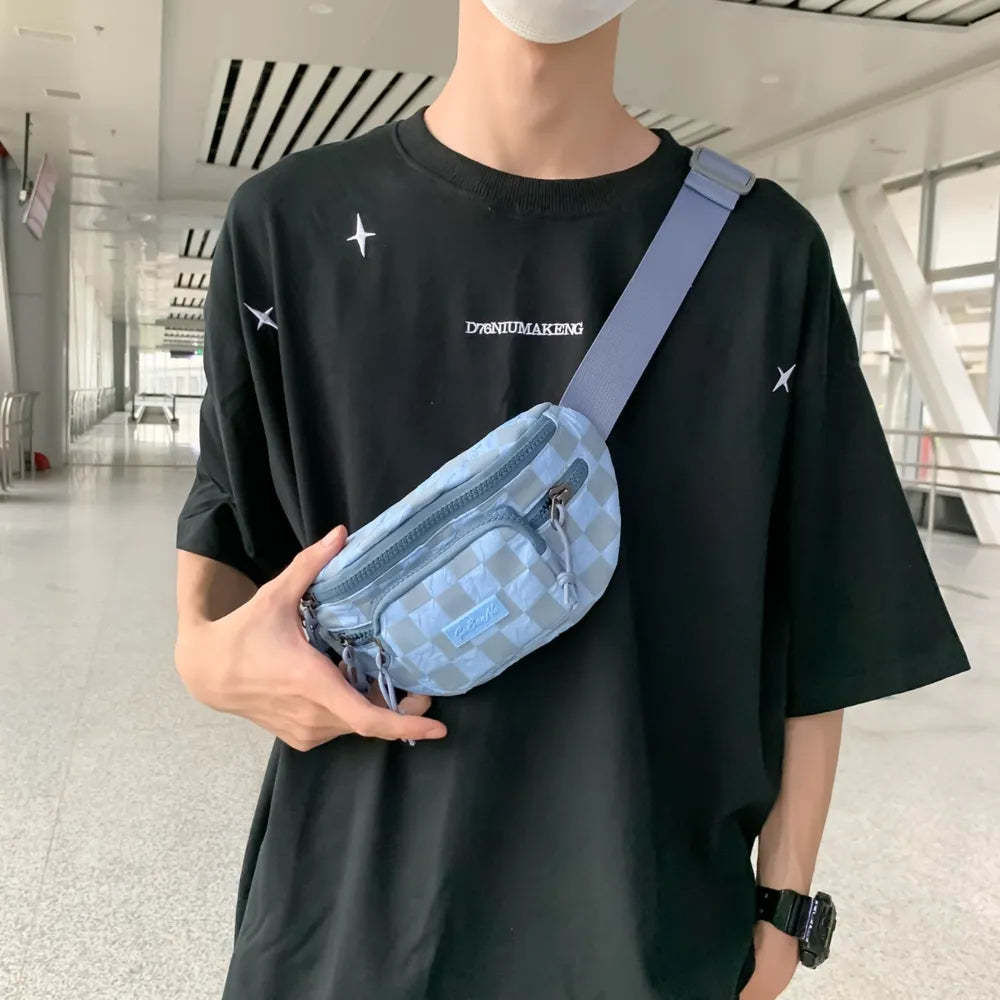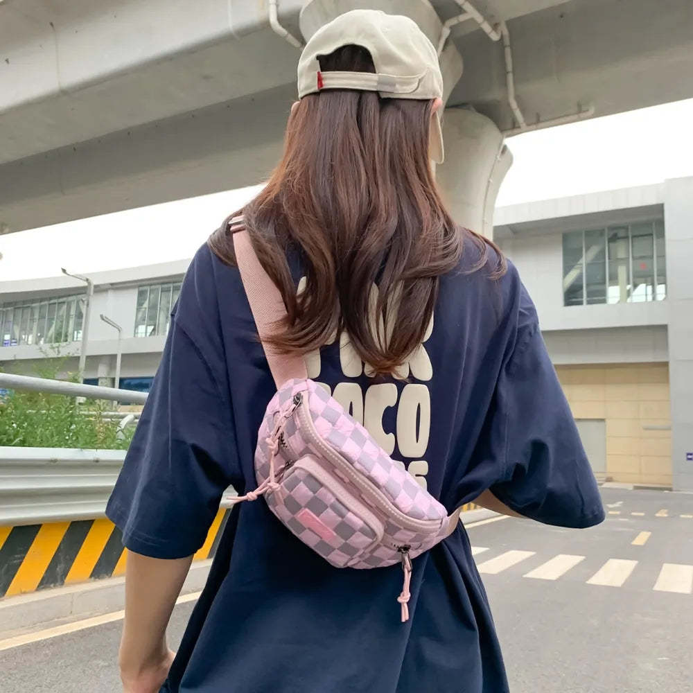 - Checkered Adjustable Strap Nylon Crossbody Bag