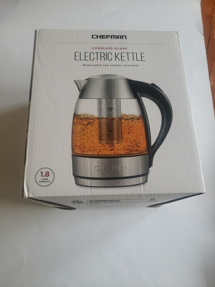 - Chefman Electric Glass Kettle, Fast Boiling W/ LED Lights, Auto Shutoff & Boil