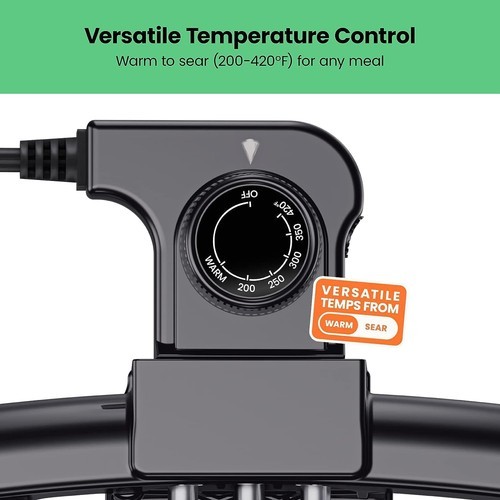* WARM TO SEAR: Adjustable temperature control from 200-420F allows for versatile cooking for simply warming foods, frying breakfast favorites, or cooking meat.