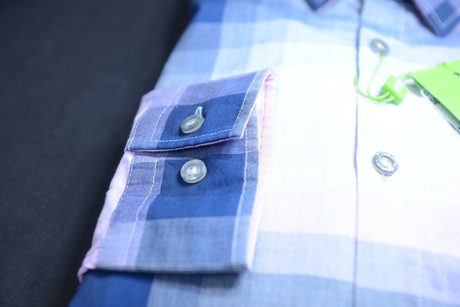 Dans la boutique, vous trouverez egalement des accessoires appropries (veuillez cliquer sur l'image) Hugo Boss Men's Bansi Fit Fit Blue / Pink Chemins Coton Sport Casual Shirt